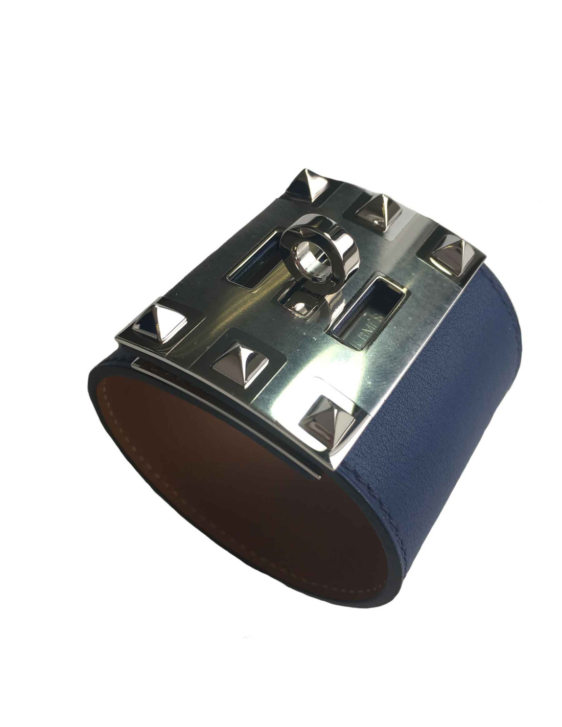 xxx Manchette HERMES modèle Extrême en cuir veau swift bleu saphir