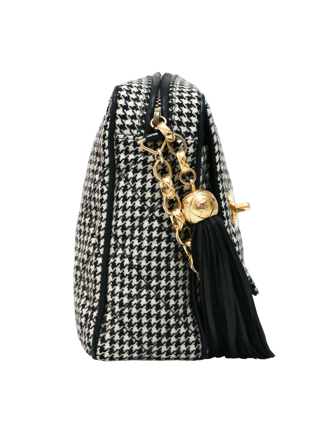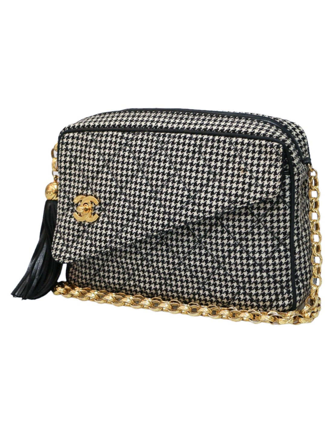 Last items in stock CAMERA CHANEL CHANEL vintage Camera GM bag CHANEL 34571 4,300.00 € Chanel black Caméra GM bag Condition : very goodMade in ItalyCollection : Caméra grand modèleGender : womanMaterial : leatherLining : black leatherColor : blackMeasurements : 27 x 20 x 8 cmShoulder strap : 104 cmHologram: noAuthenticity card : yesYear : 1989-1991Hardware :24K gold plated metalDetails : iconic pompn tassel Add to cart