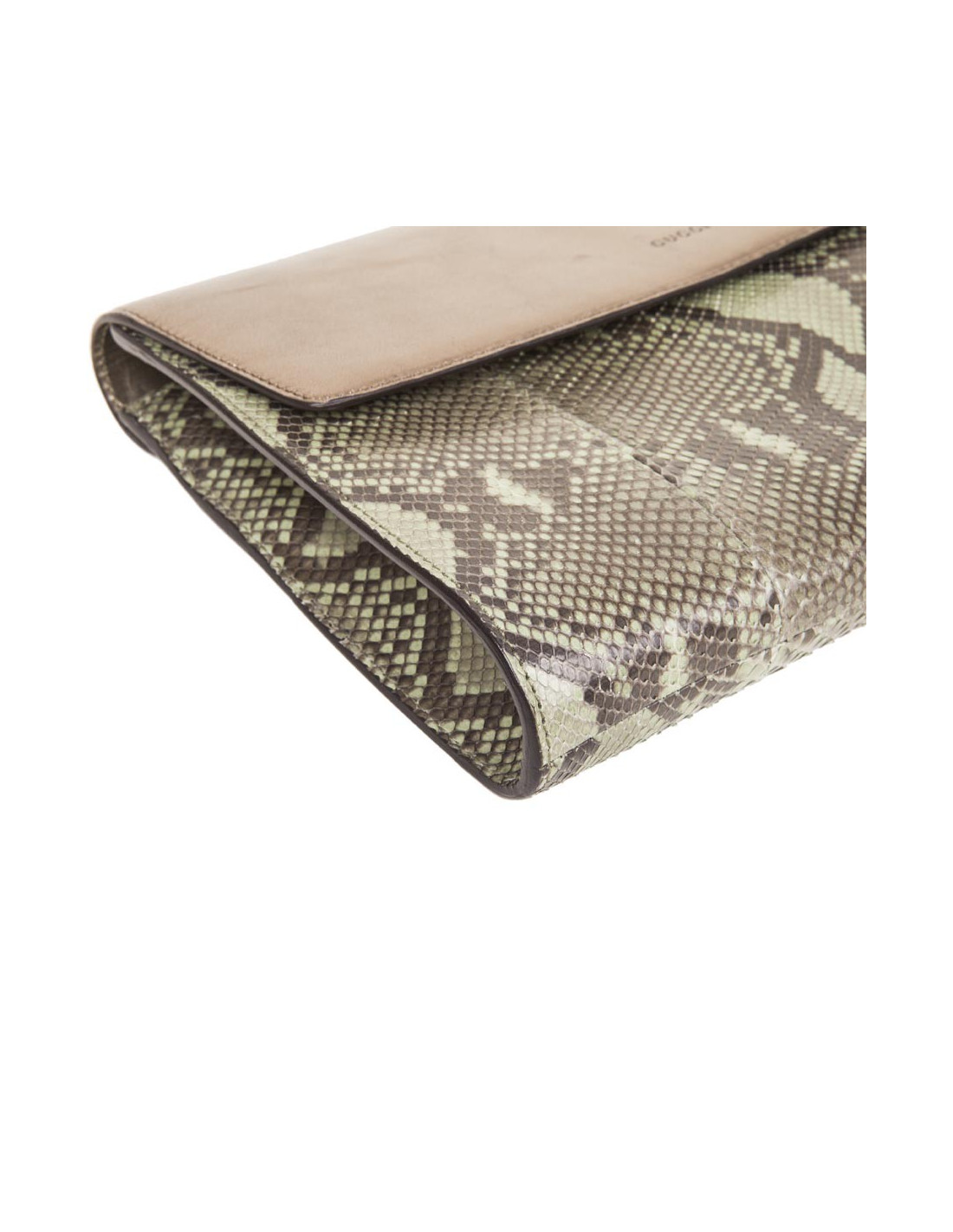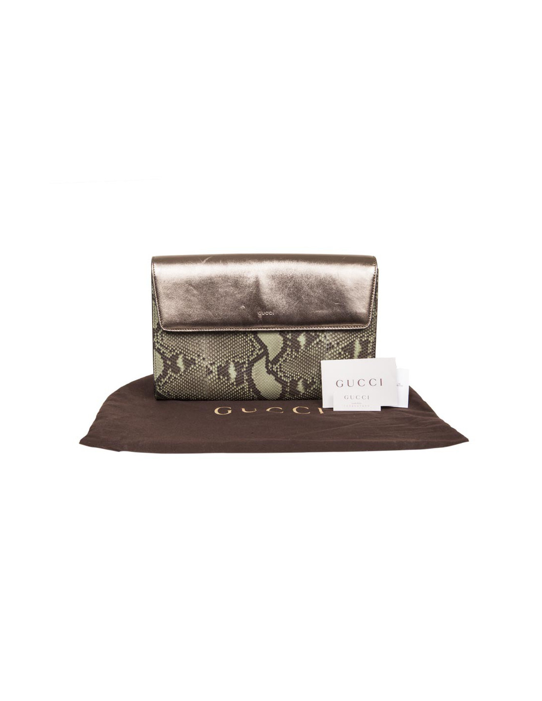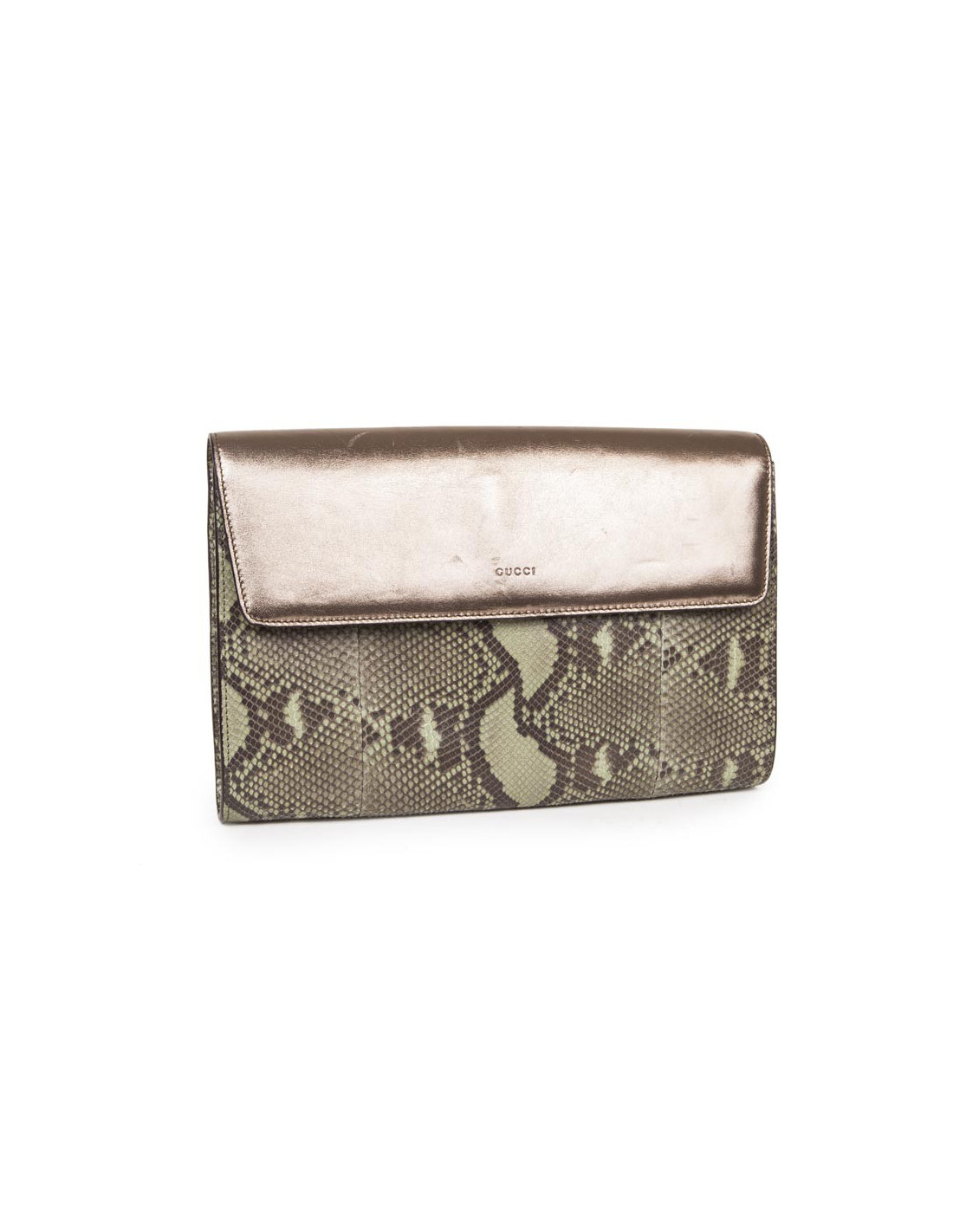 GUCCI green and bronze python clutch