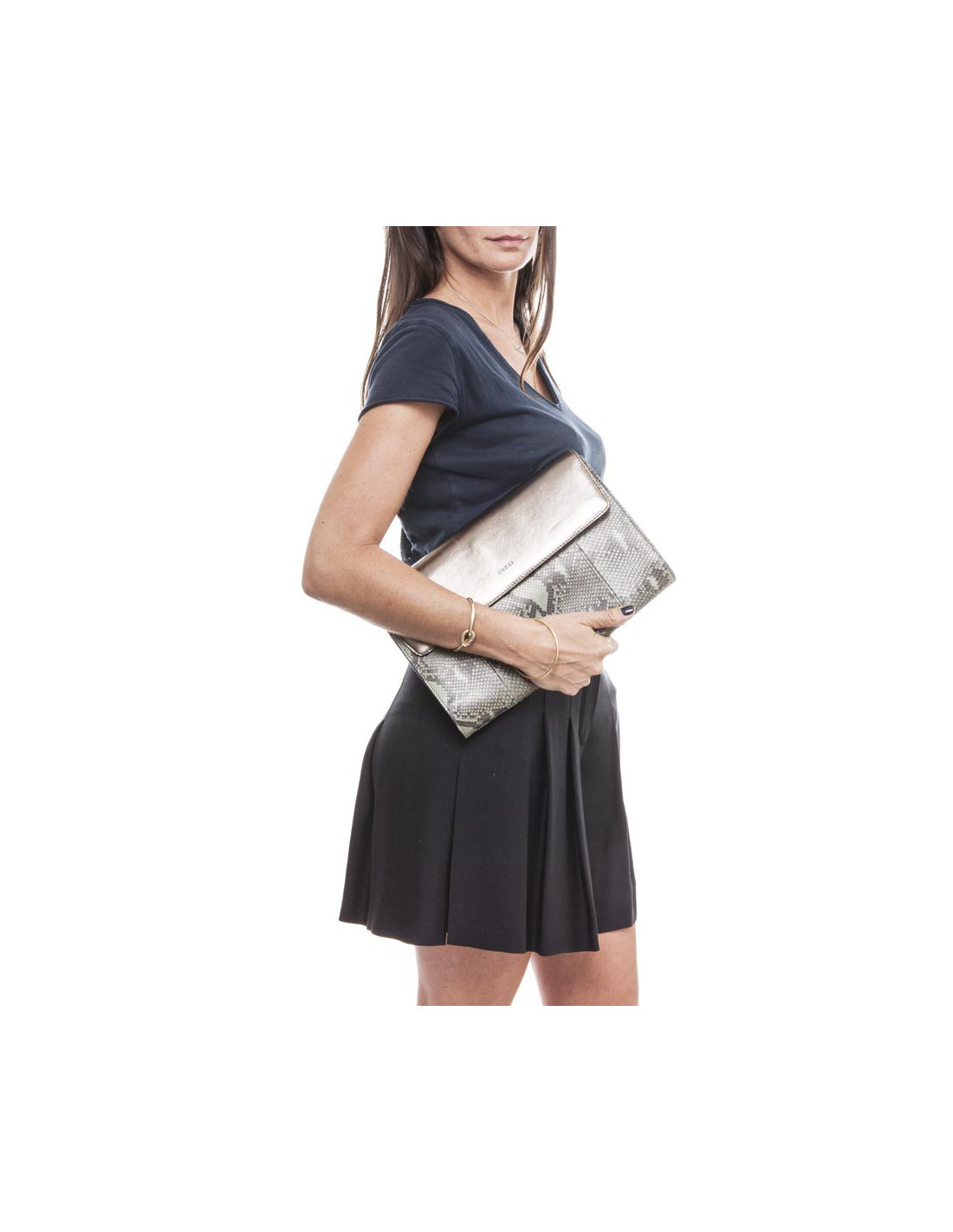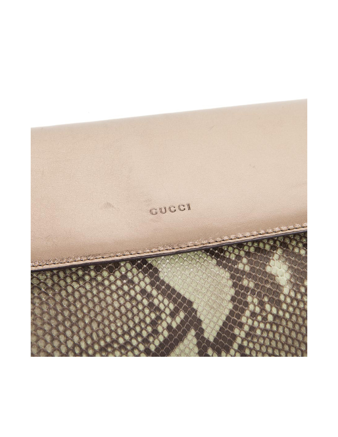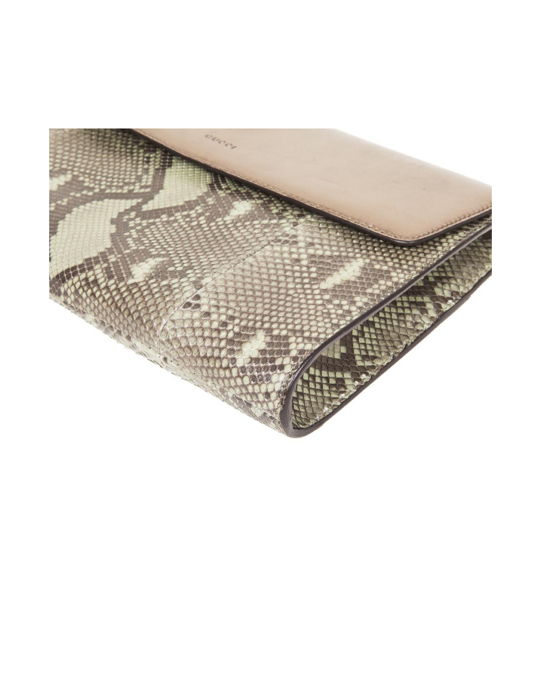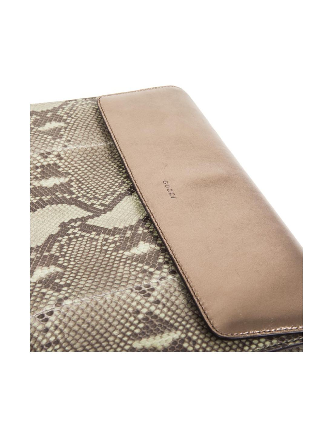 GUCCI green and bronze python clutch