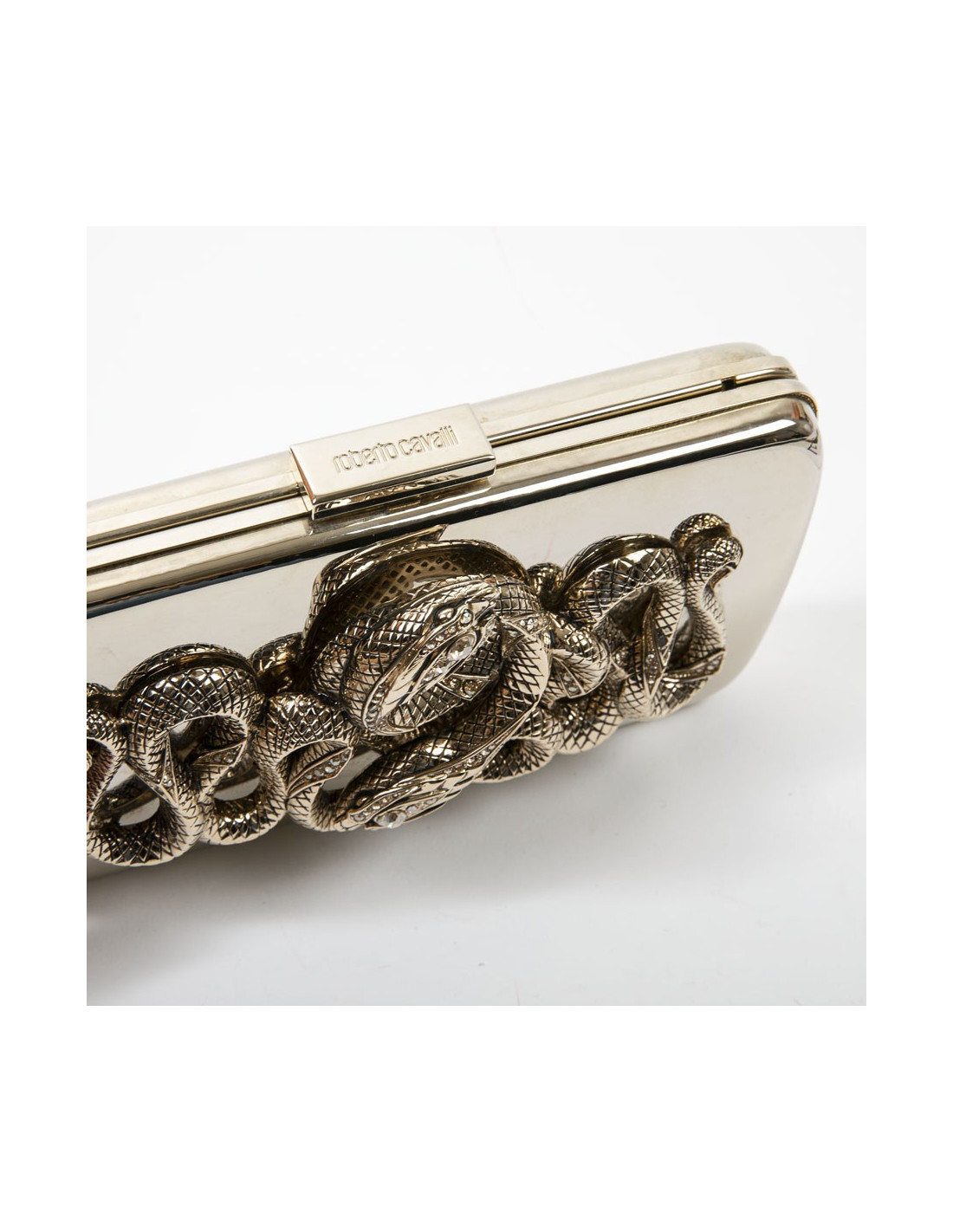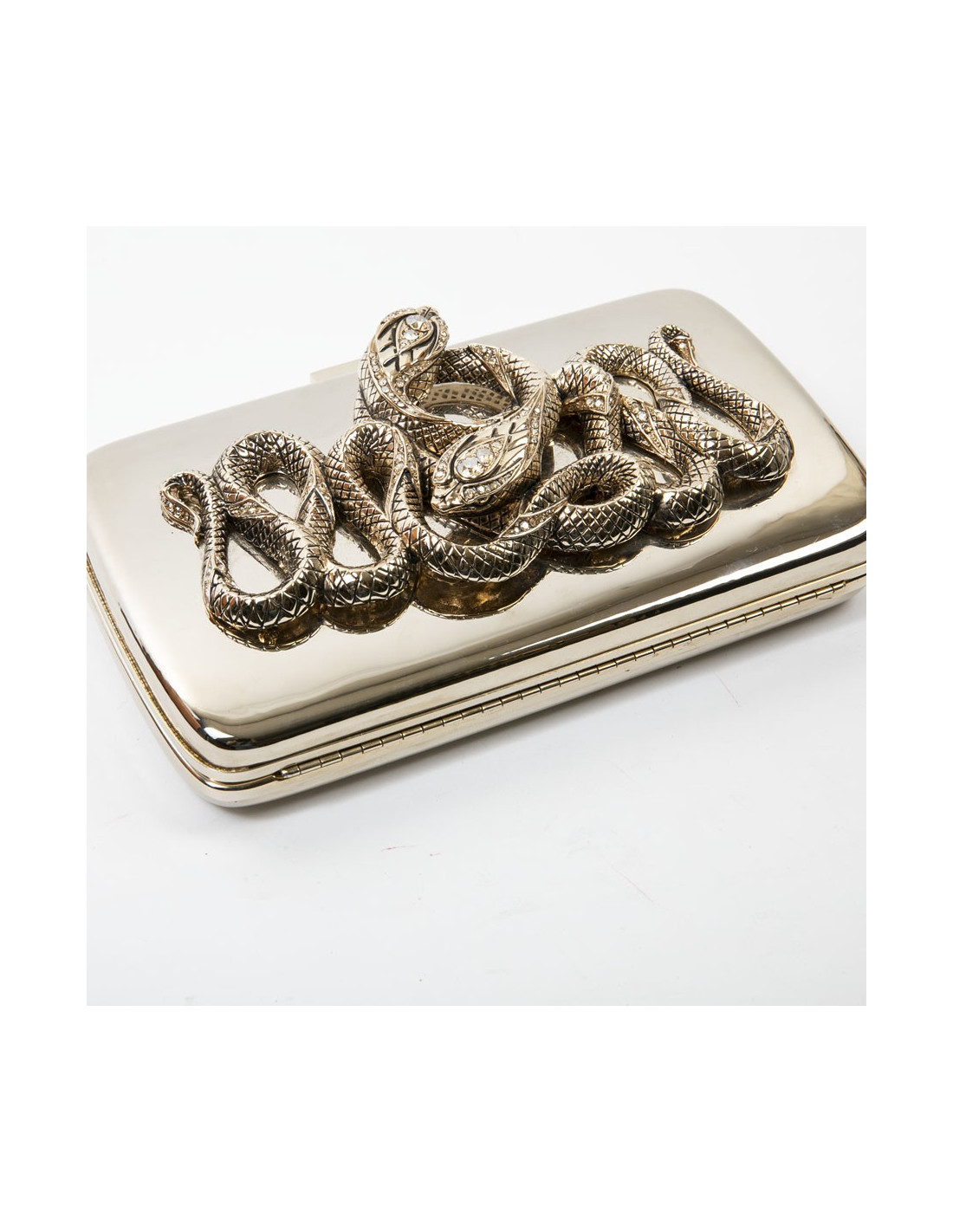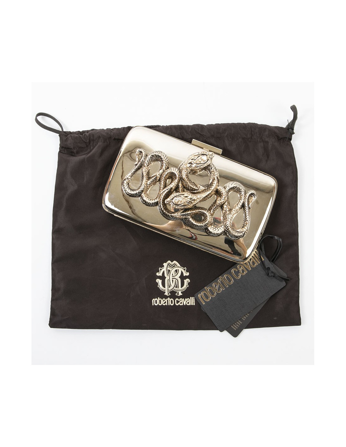 ROBERTO CAVALLI Minaudière in mirror effect gilt metal and snake ornament
