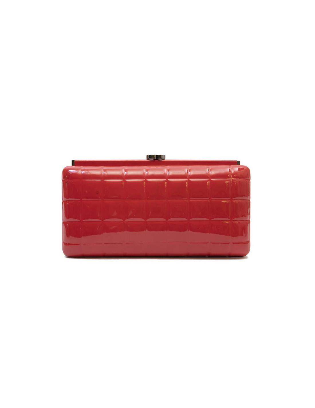 Chanel clutch in red patent leather.