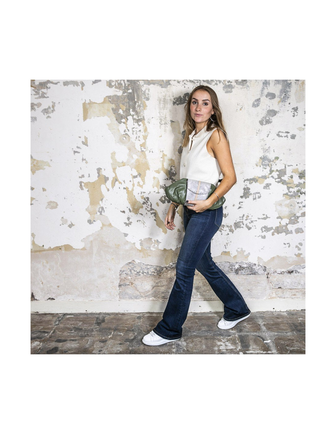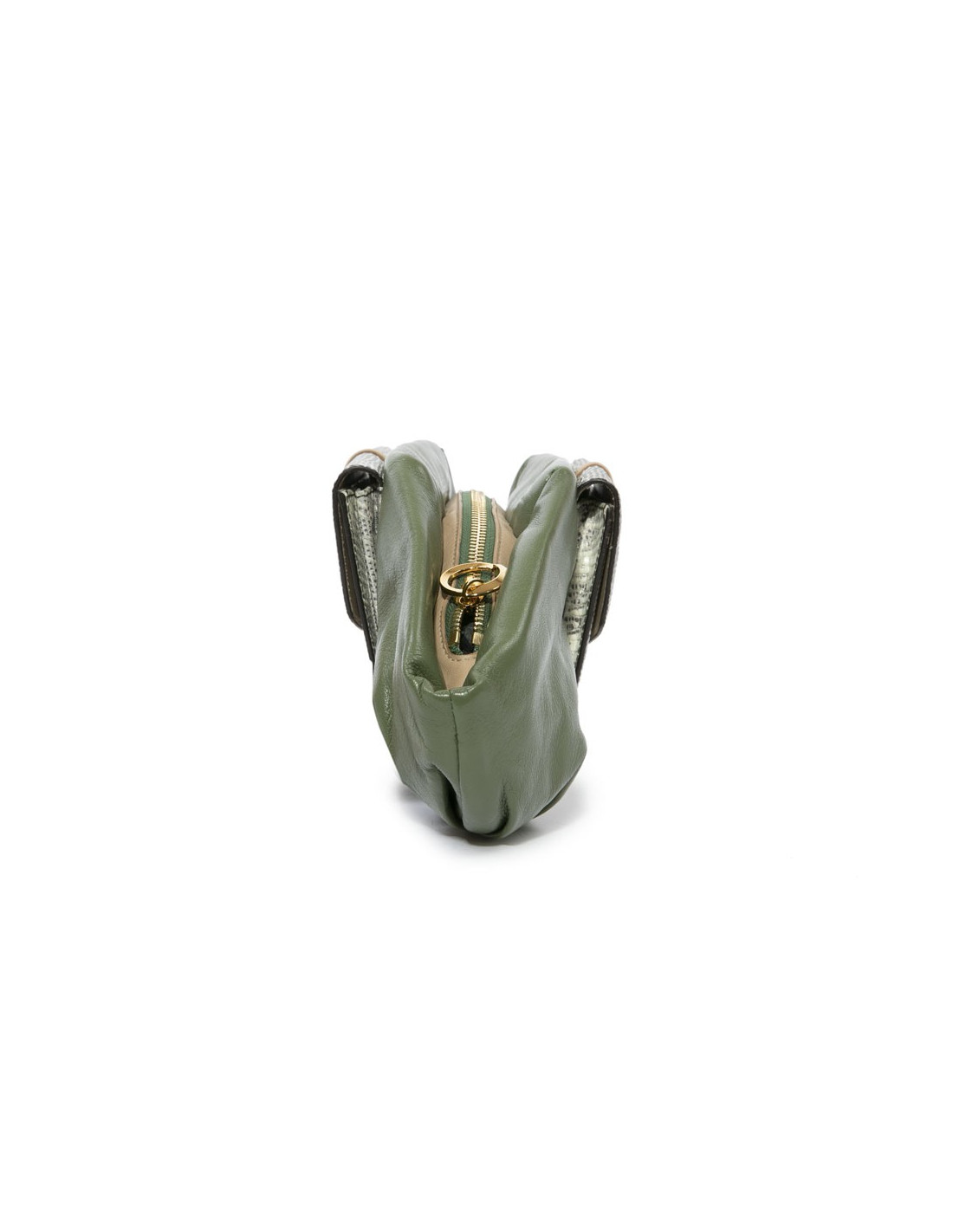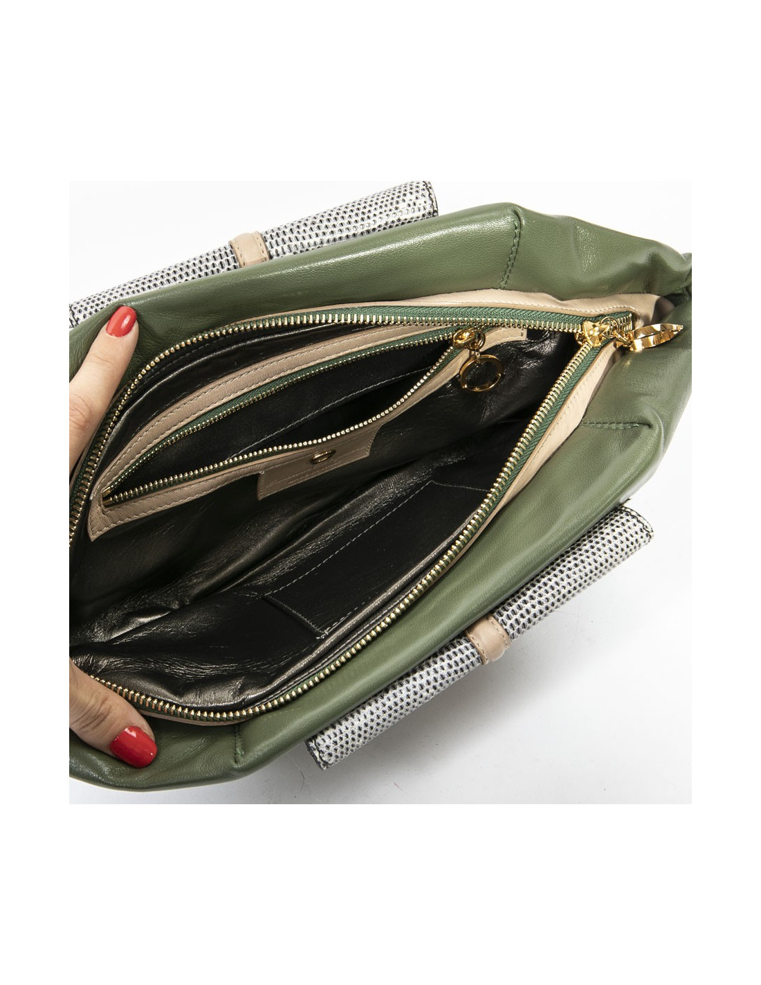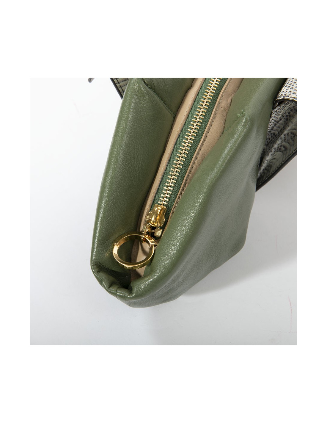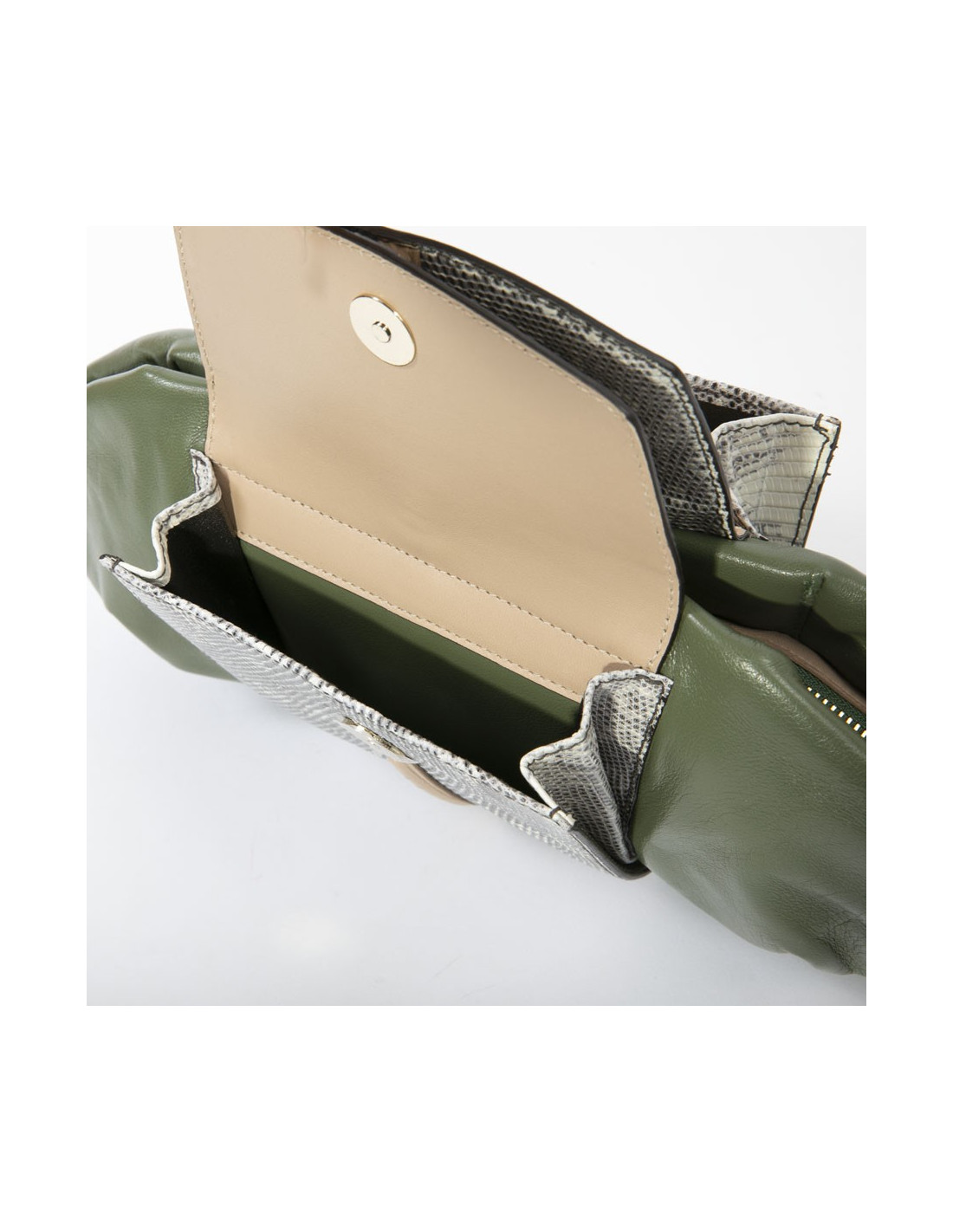 Pochette Francesca Castagnacci en cuir vert avec deux poches en lézard - détails :