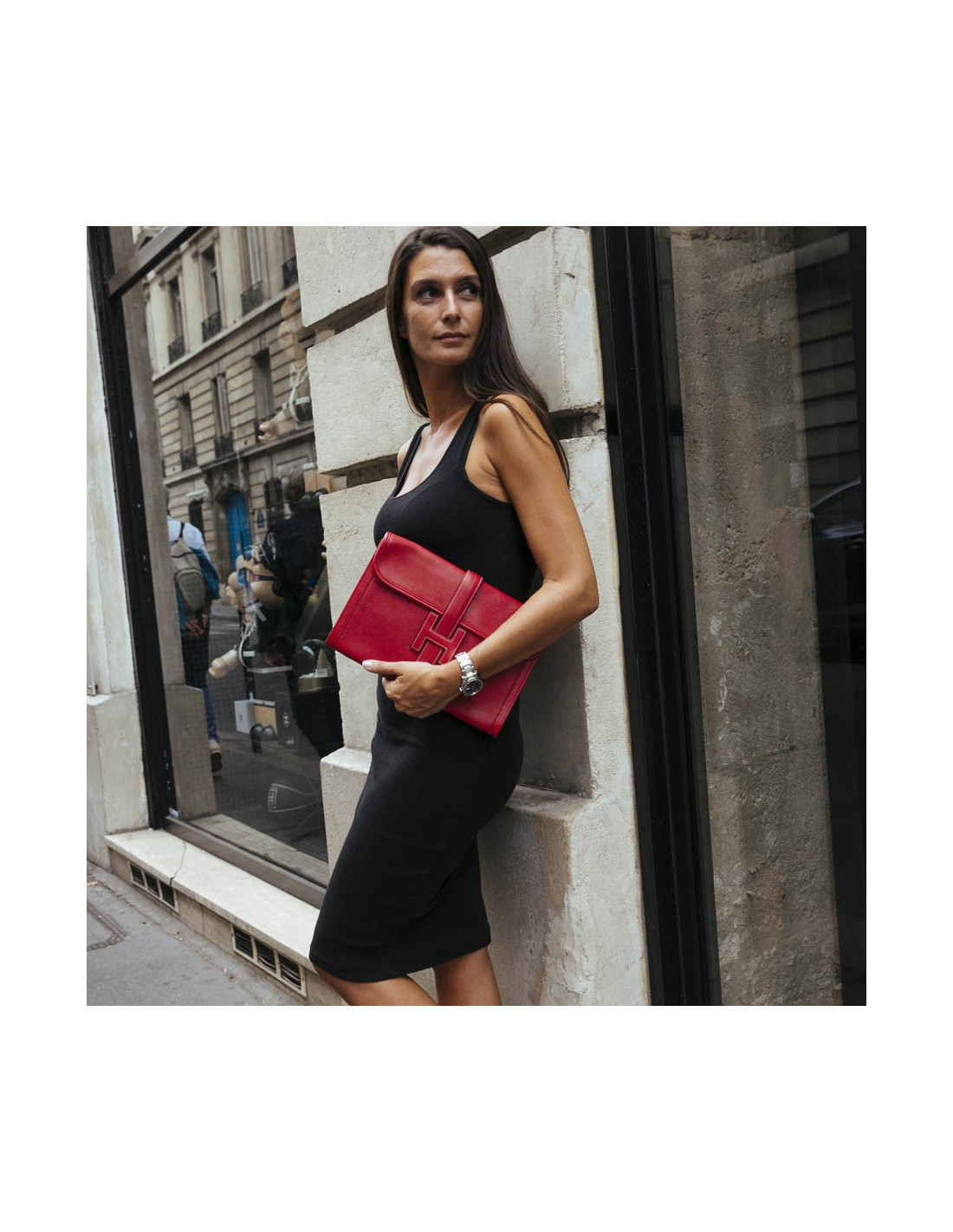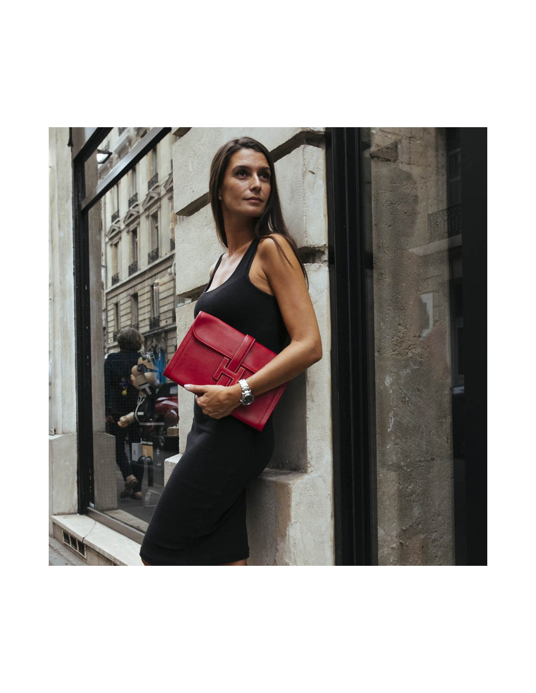 The iconic items of the House of Hermès are no longer described because they are so recognizable. This Jige clutch is very elegant worn day or night. It is in very good condition despite a few scratches on the back.