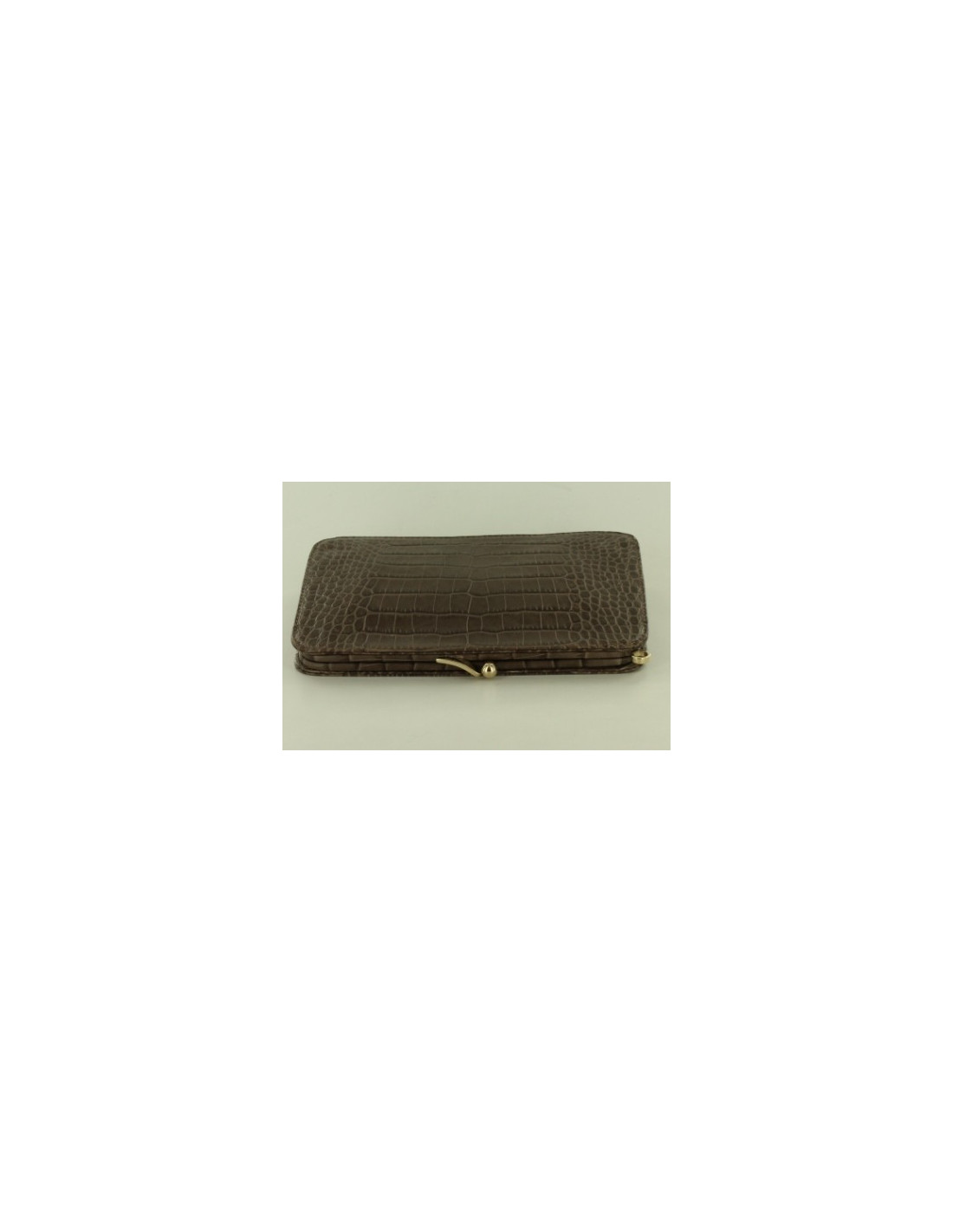 Bellows in crocodile, Brown pouch glossy, Valentino, even elegance! Sa color goes with many outfits in different colors. It is in very good condition. small scratch on one side. There's a nice Golden clasp which opens onto a Brown satin with a small pocket lining.