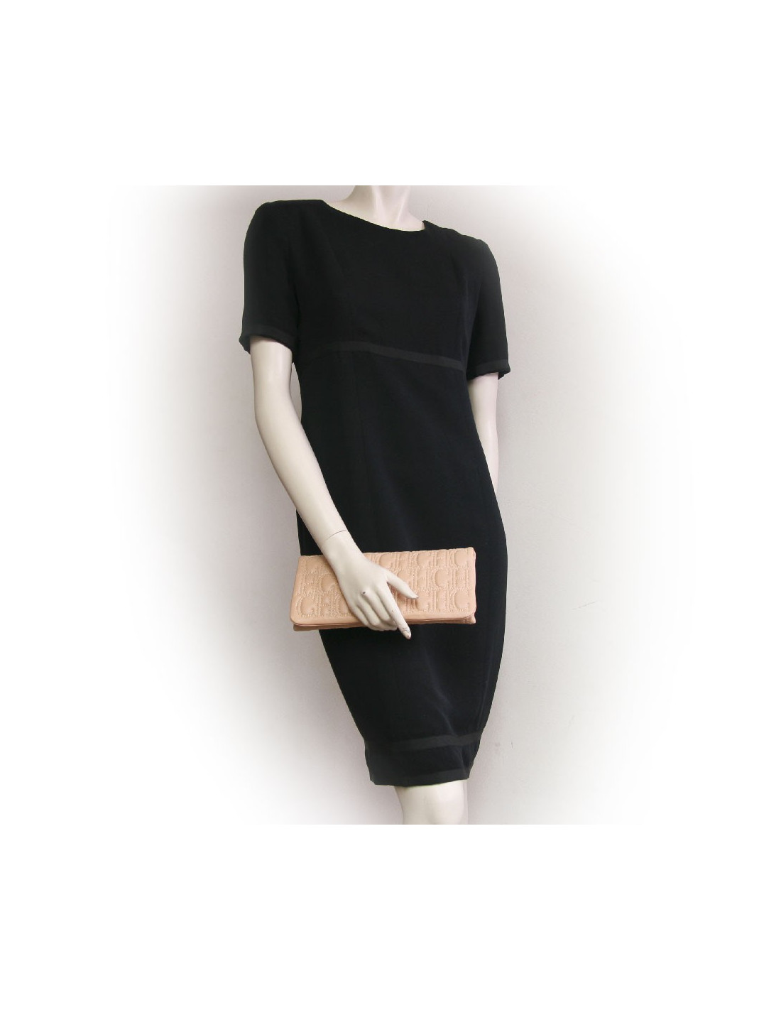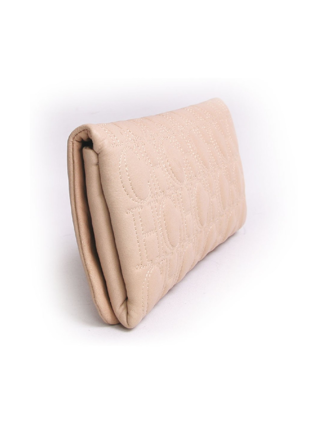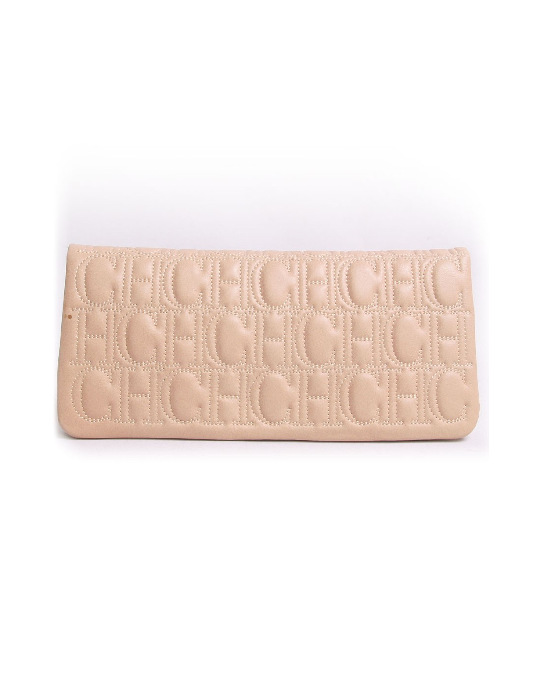 Carolina Herrera cover quilted beige leather. Closing pressure. The Interior is cloth with a zipped pocket. The jewelry is gold metal. Topstitching are also beige. In very good condition.
