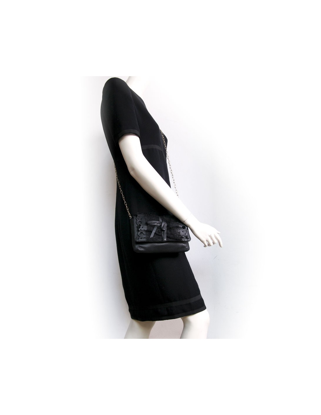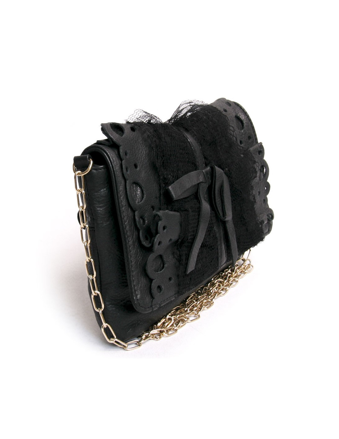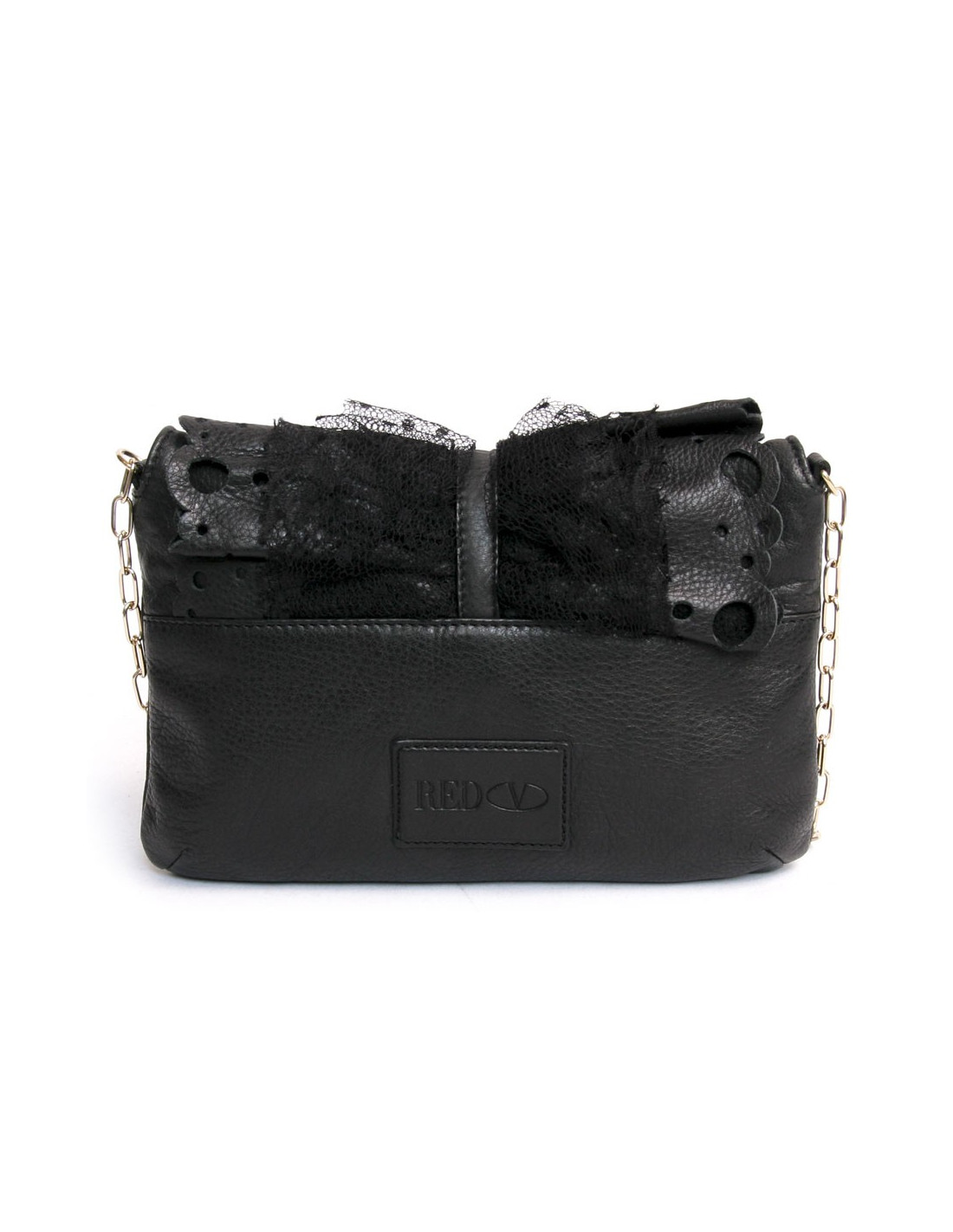 Bag pouch Red Valentino leather and Black Lace. Snap button closure. It is worn at the shoulder using a shoulder strap in gold metal. L ' Interior is pink fabric with a small zipped pocket. In very good condition (the rivets on the back left side are disaffected leather).