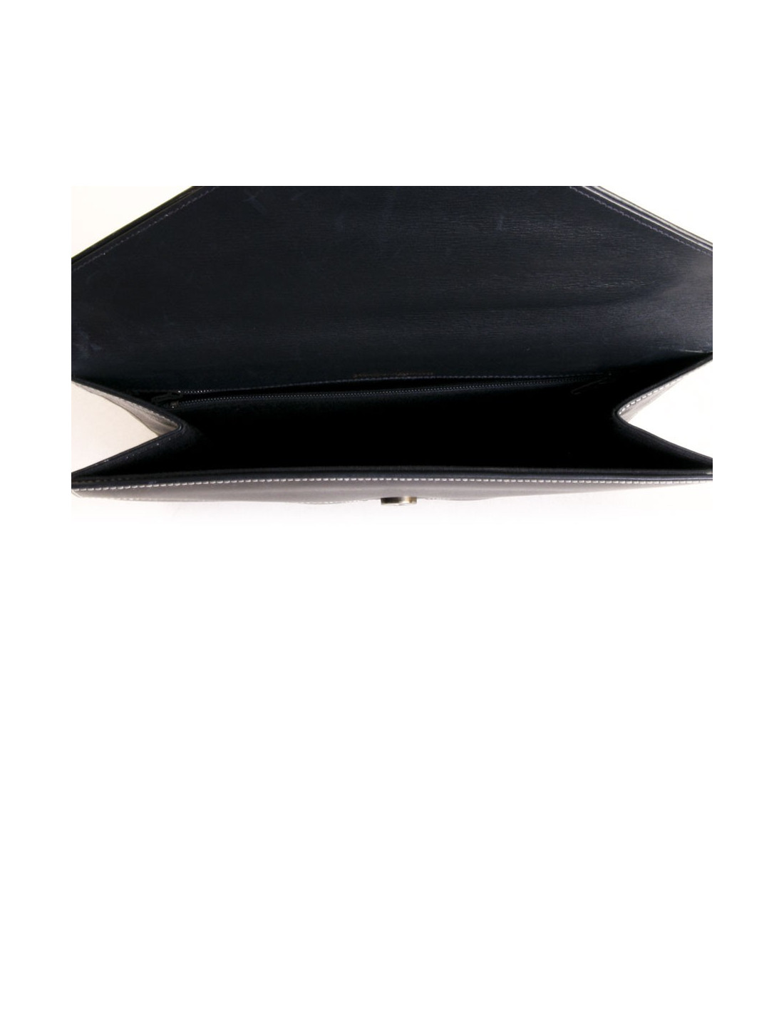 Closes with a pressure magnetized, the Interior in blue canvas contains two pockets and one zipped, white saddle stitching.