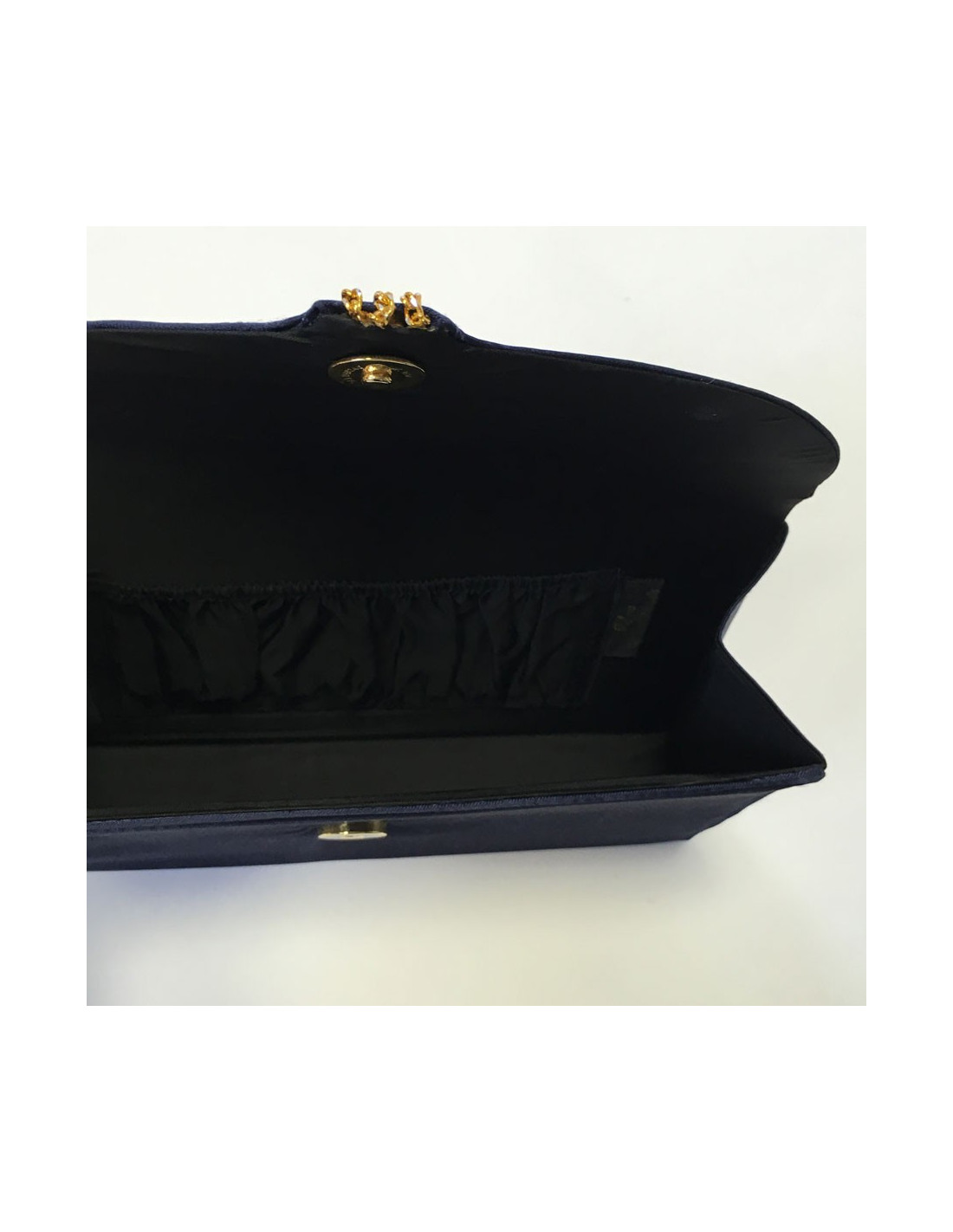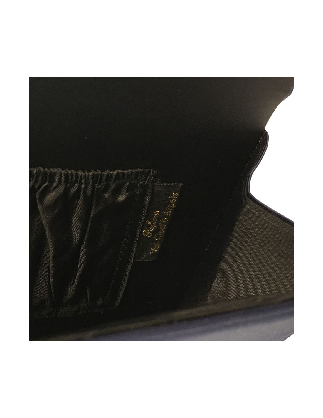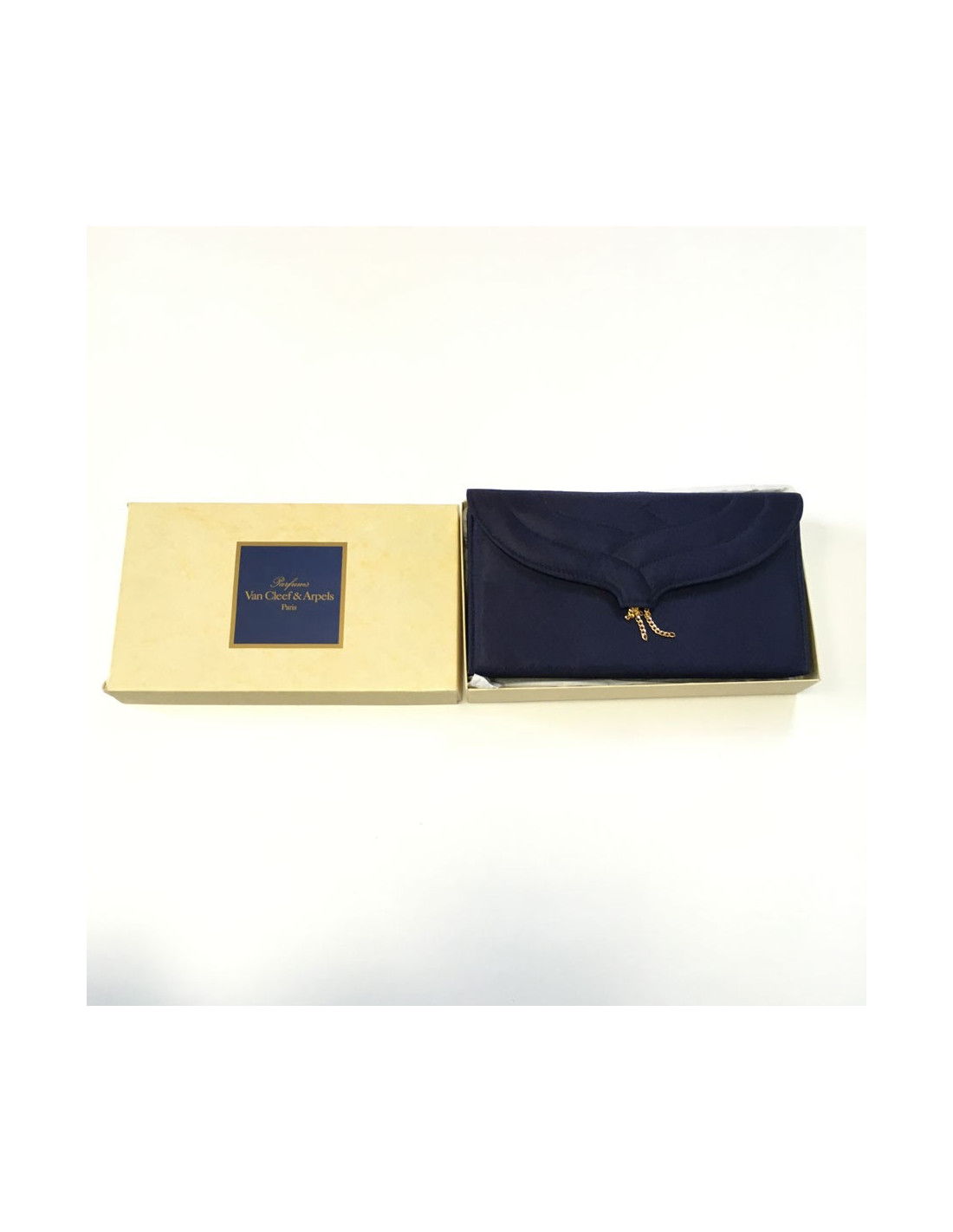 Cover of the evening VAN CLEEF & ARPELS in blue satin. Clasp magnet with 3 small dangling chains. Interior in satin black, small elastic pocket on the side. Rigid sleeve. In perfect condition.