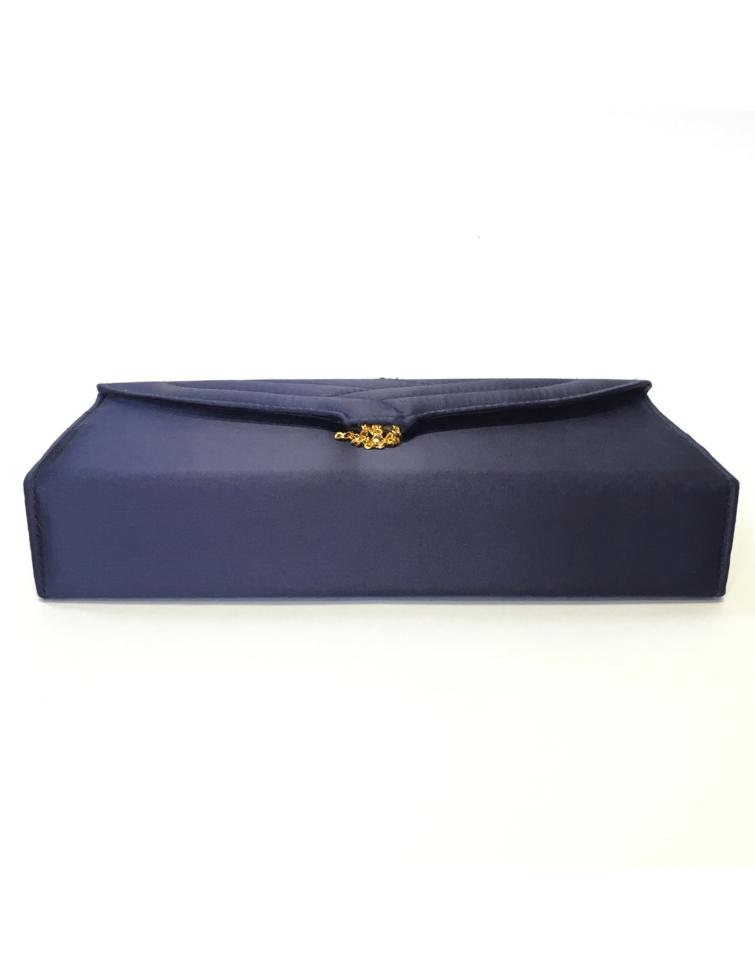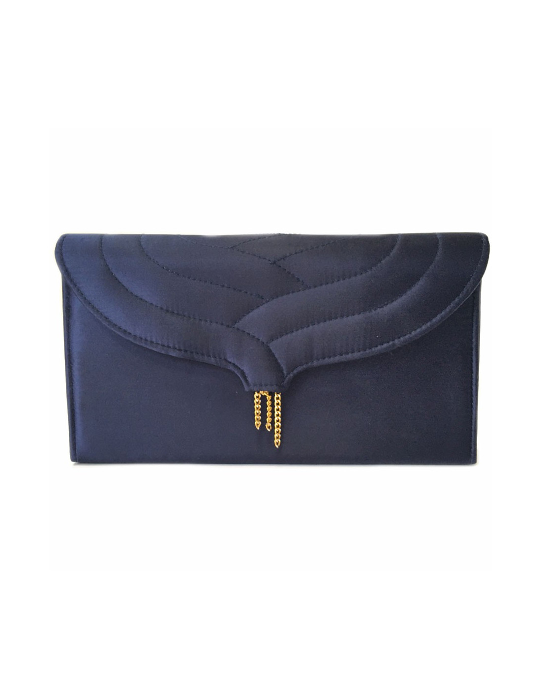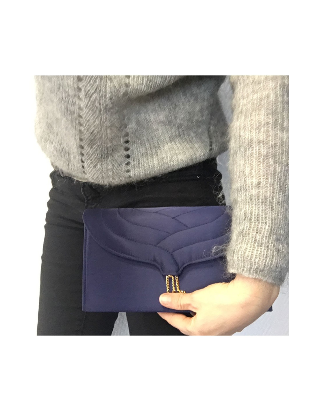 Cover of the evening VAN CLEEF & ARPELS in blue satin. Clasp magnet with 3 small dangling chains. Interior in satin black, small elastic pocket on the side. Rigid sleeve. In perfect condition.