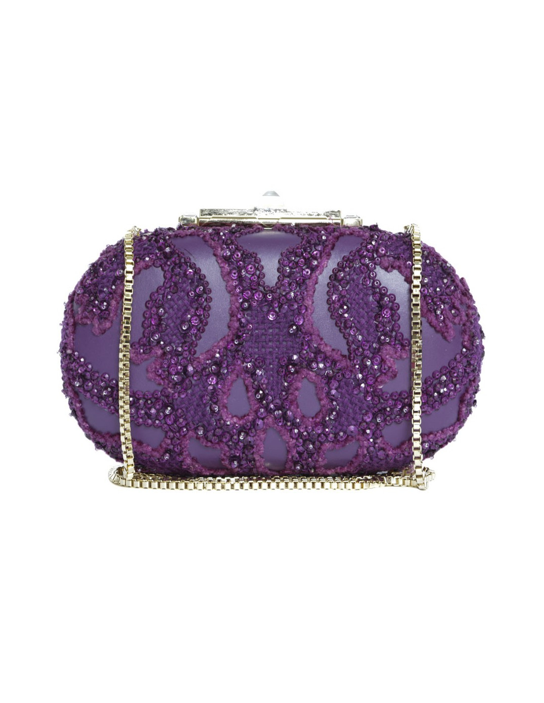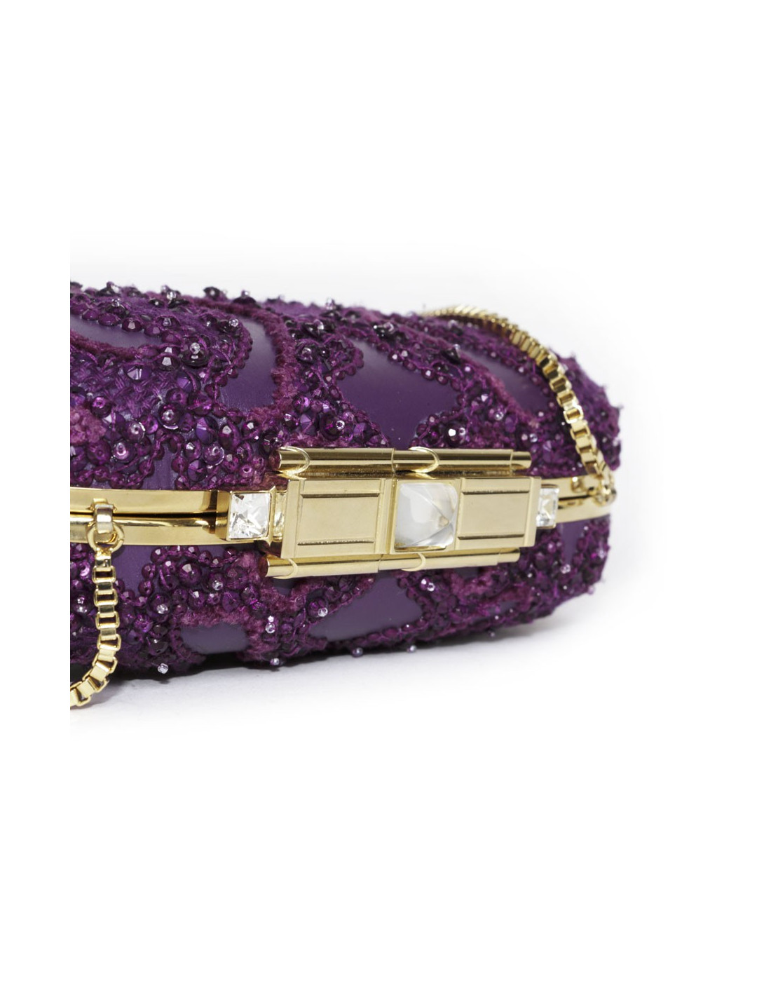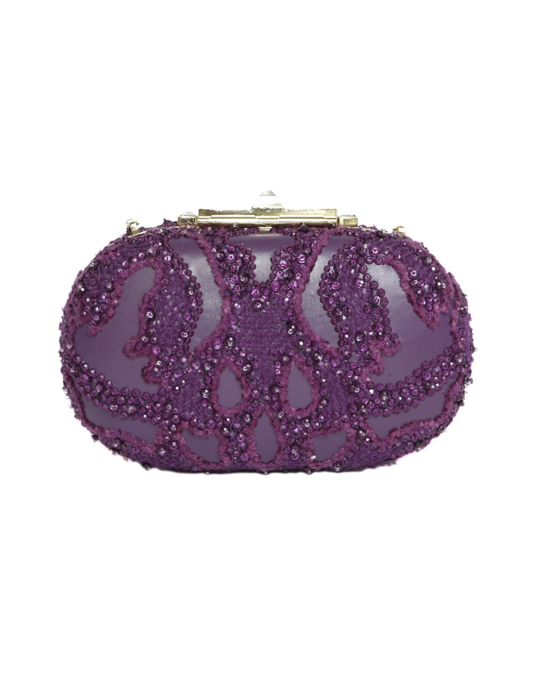 Elie Saab minaudière evening bag in purple leather and fabric embroidered with pearls.