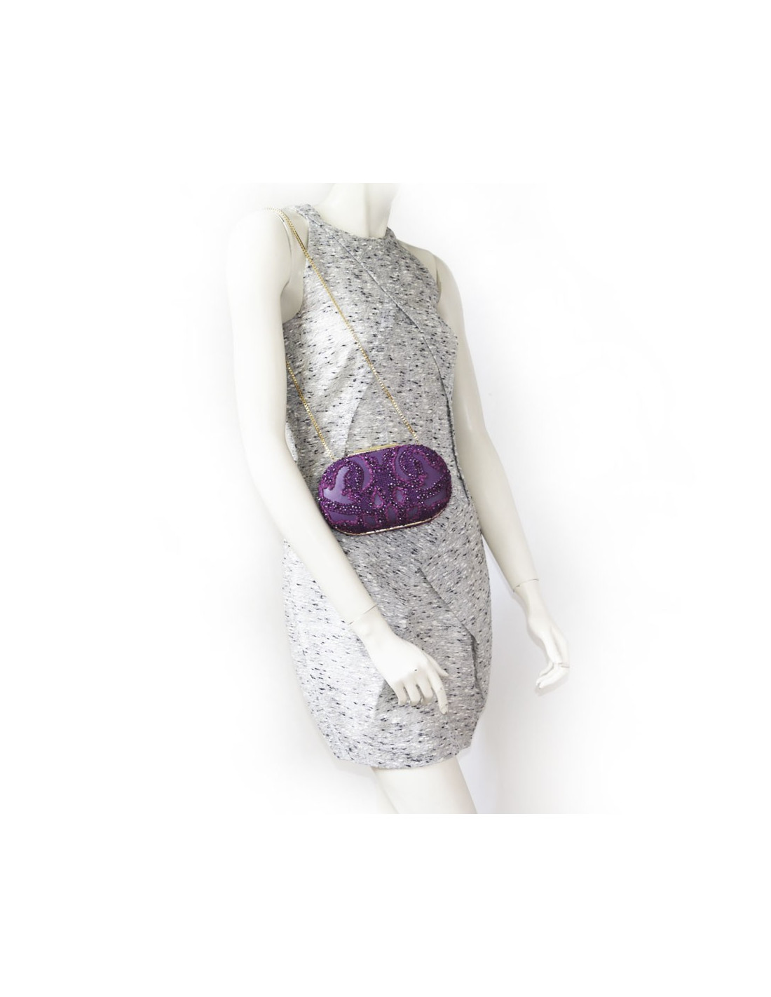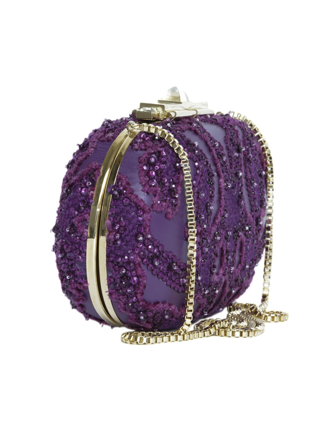 It is worn by hand or shoulder with a golden chain strap: 80 cm