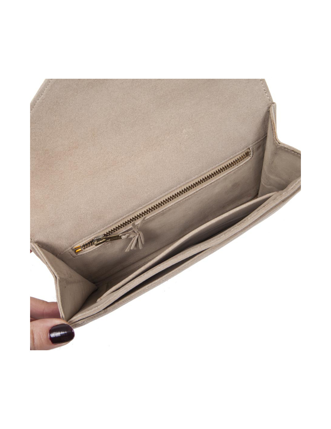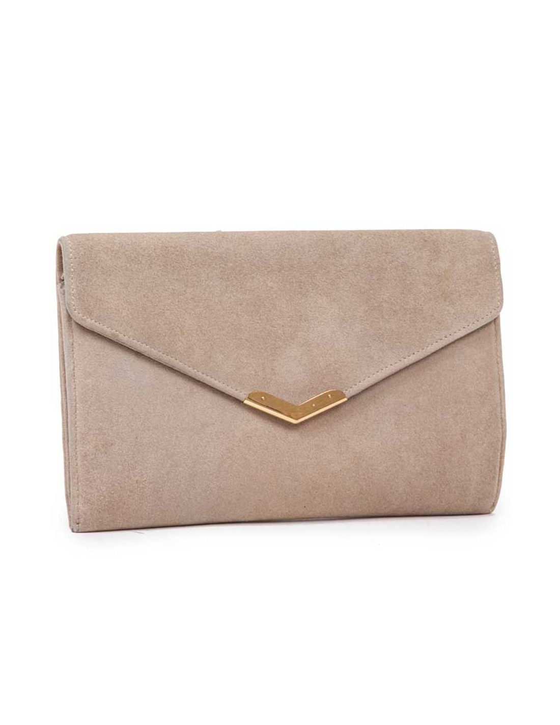 Hermès vintage clutch in natural suede. Clasp in gold (punch). Snap closure with external slit. The interior is in natural suede with a slit and a zipped pocket.