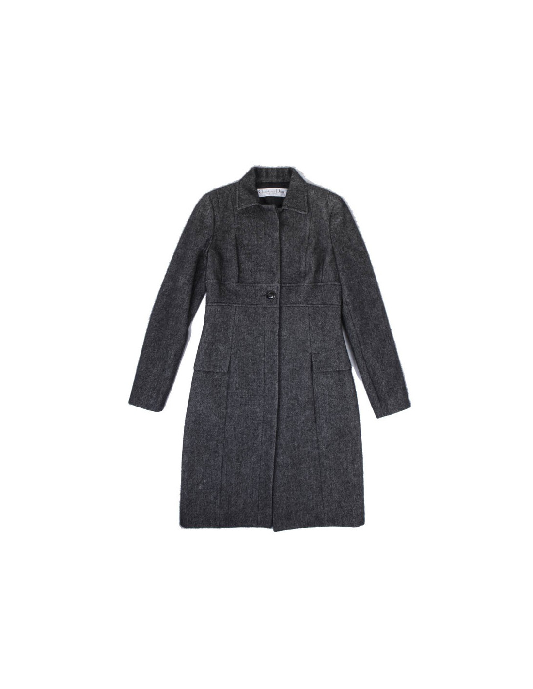 Very sweet coat Christian Dior (by John Galliano) in Angora and gray and black wool. The high waist closes with 6 black engraved "Dior" buttons. Height 38