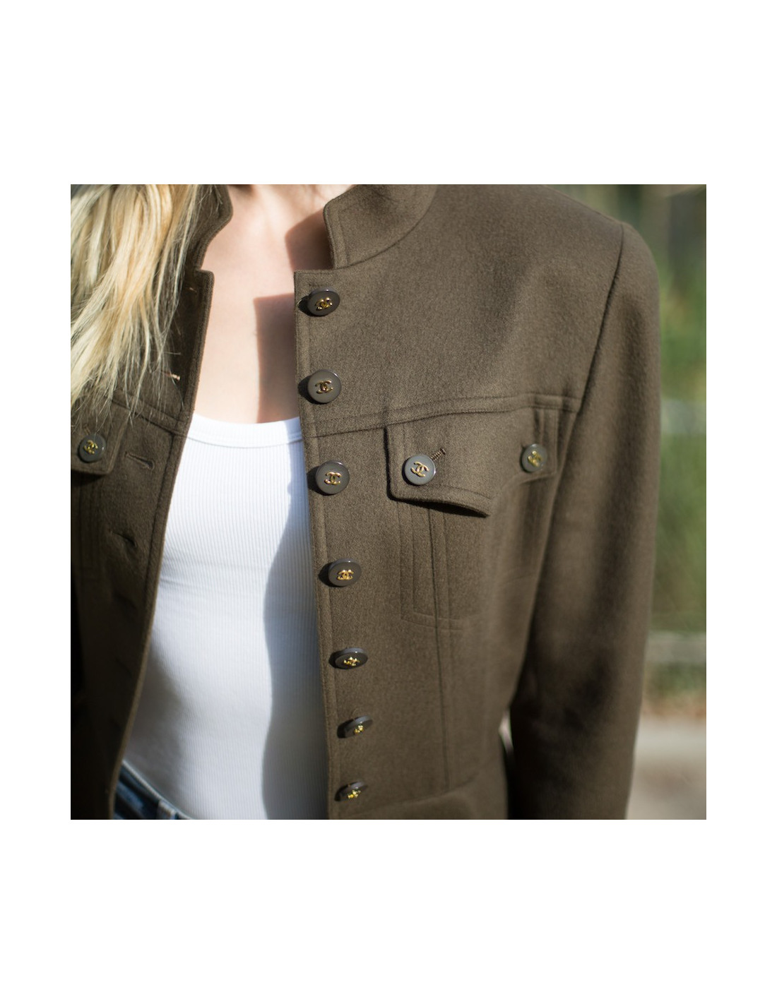 Last items in stock COATS-TRENCHS CHANEL Coat Paris-Salzbourg Collection, size 38FR CHANEL 35290 3,900.00 € CHANEL Métiers d'Art 2015 coat Condition : very goodMade in FranceSize : 38FRMaterials : cashmereColors : burgundy, brown, greenMeasurements : shoulders 42 cm, underbust 56 cm, height 65 cm, sleeves length 58 cm, wrist circumference 30 cmCollection : Métiers d'Art 2015 Paris-SalzburgDetails : Collection presented in Austria. This long burgundy cashmere... Add to cart