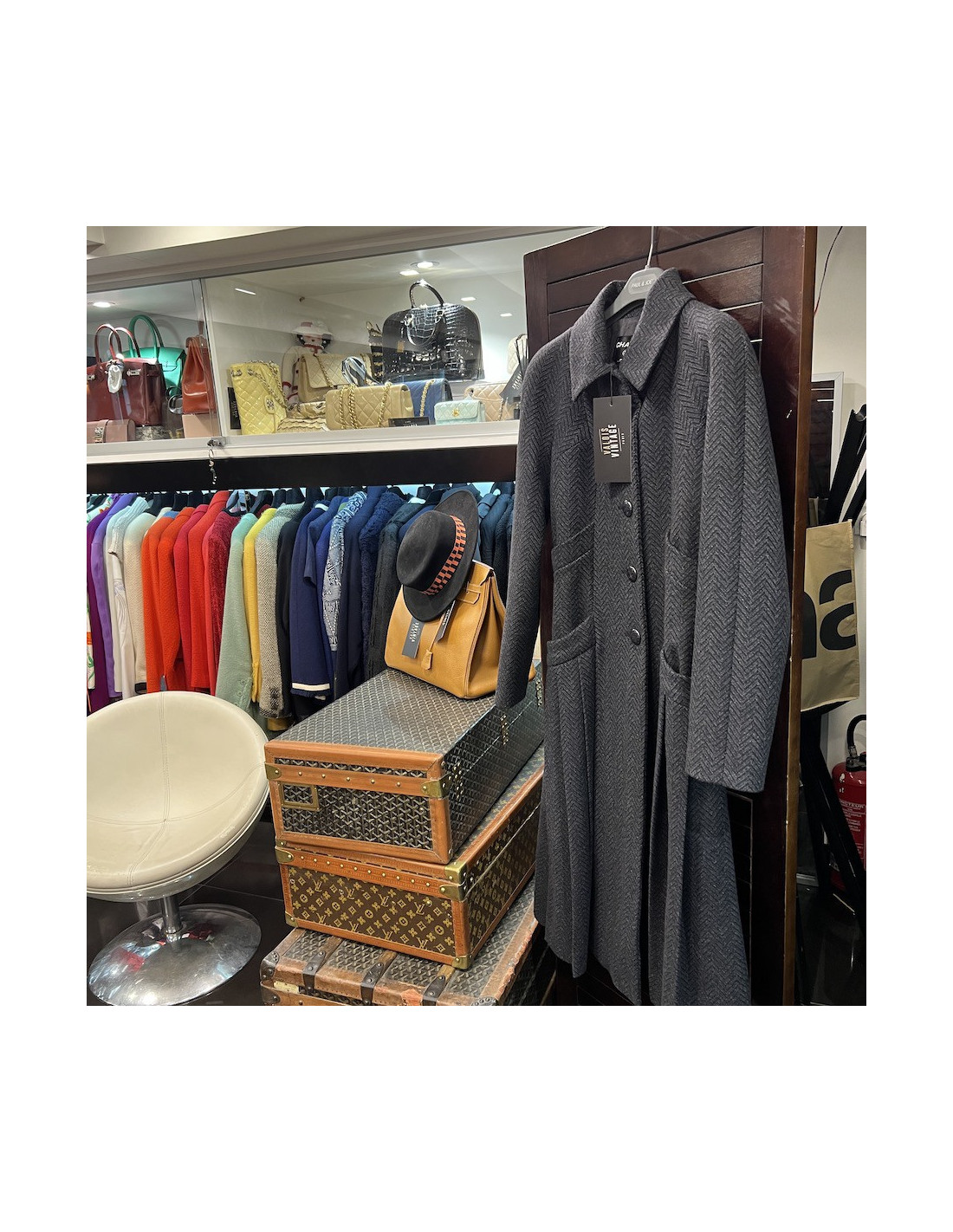 Online only Last items in stock COATS-TRENCHS CHANEL Vintage couture coat CHANEL 17899 3,950.00 € CHANEL Vintage couture coat condition: good Model: coat Size: 40FR Materials: tweed Lining: silk Hardware: gold finish metal buttons Colors: off-white Measurements: length: 98cm, shoulders: 40cm, bust: 49cm, sleeves length: 39cm Details: Couture and Vintage! Chanel Couture coat dress with three-quarter sleeves in ivory tweed and gold metal buttons. Double... Add to cart
