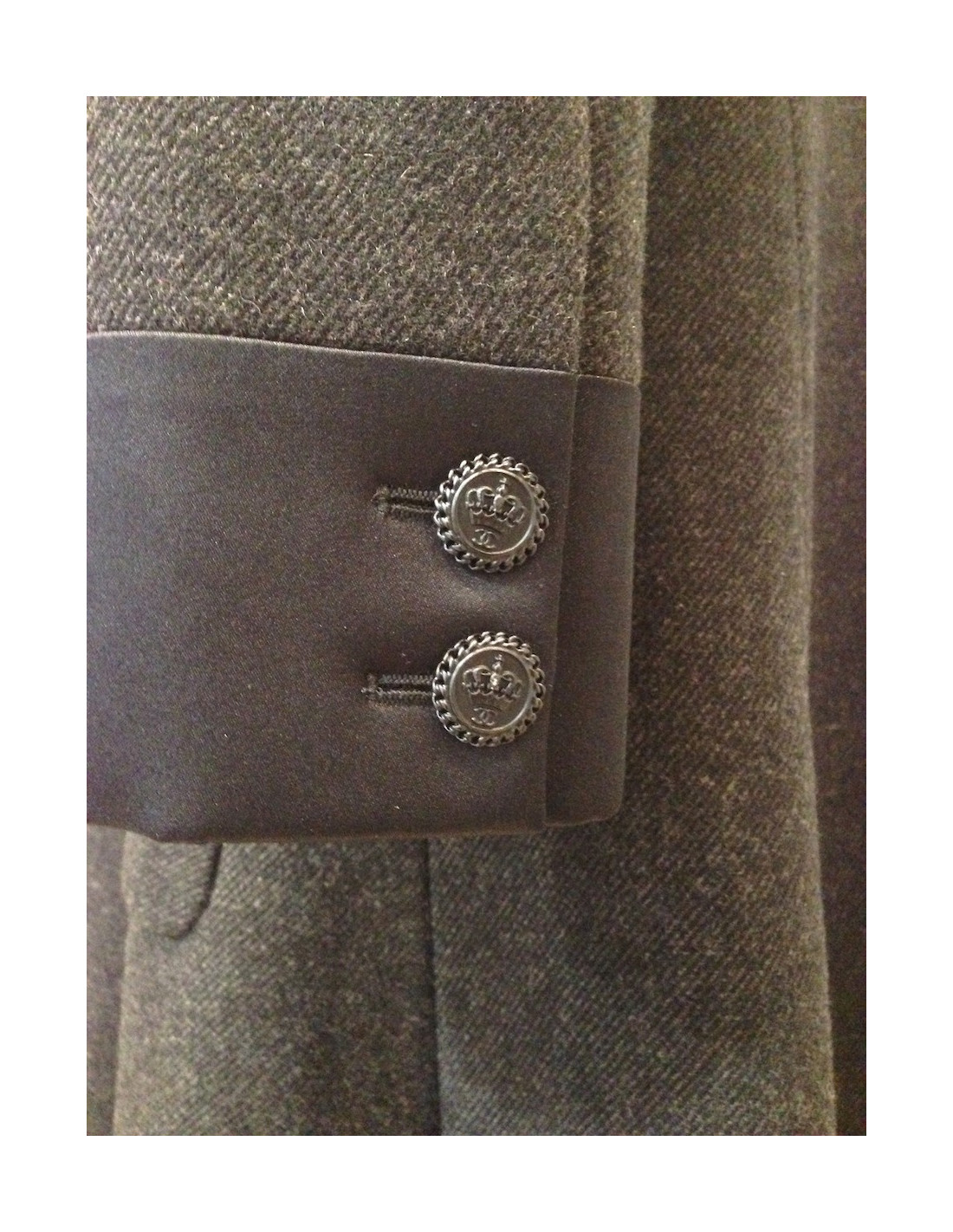 It is crossed by a double-breasted. The buttons represent a Crown and double black C.