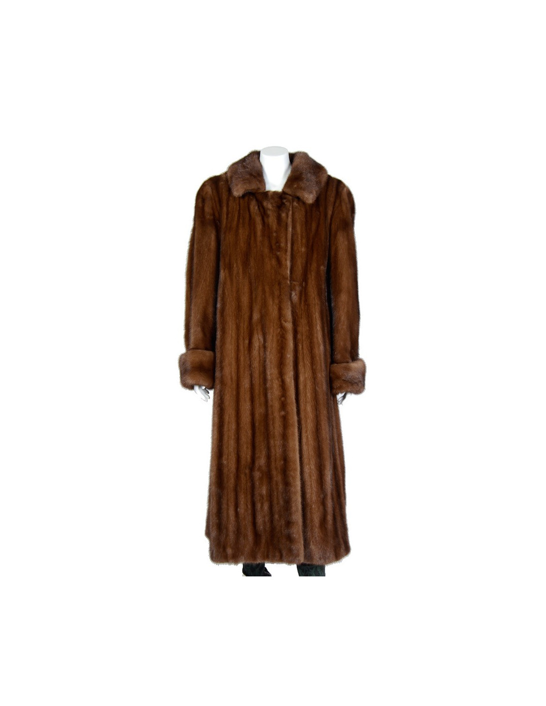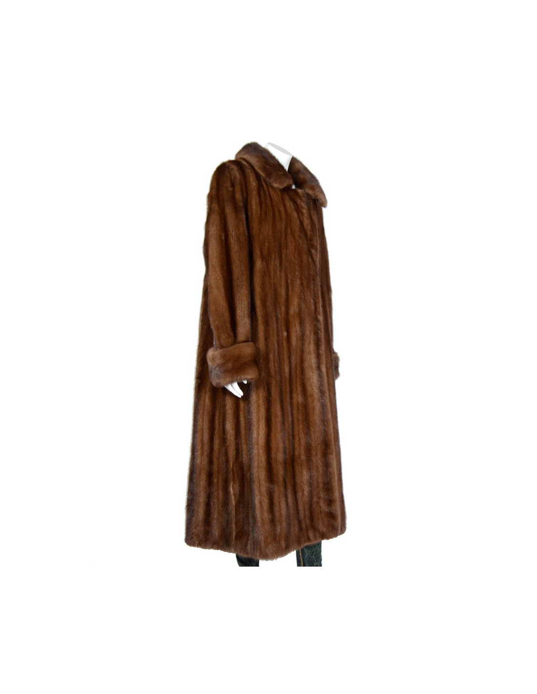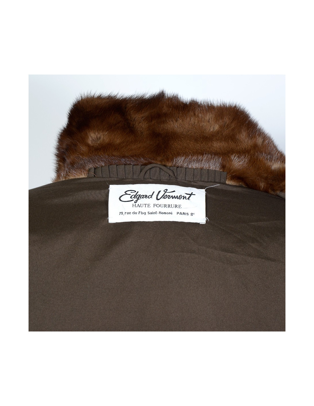 Superb coat of the great House of Furrier Edgar Vermont Faubourg Saint Honoré Paris, Brown mink 8th. Fastening hooks 3 buttons. A flat at an angle on each side pocket. The lining is brown cotton. No size tag, is equivalent to a size 40. In very good condition.