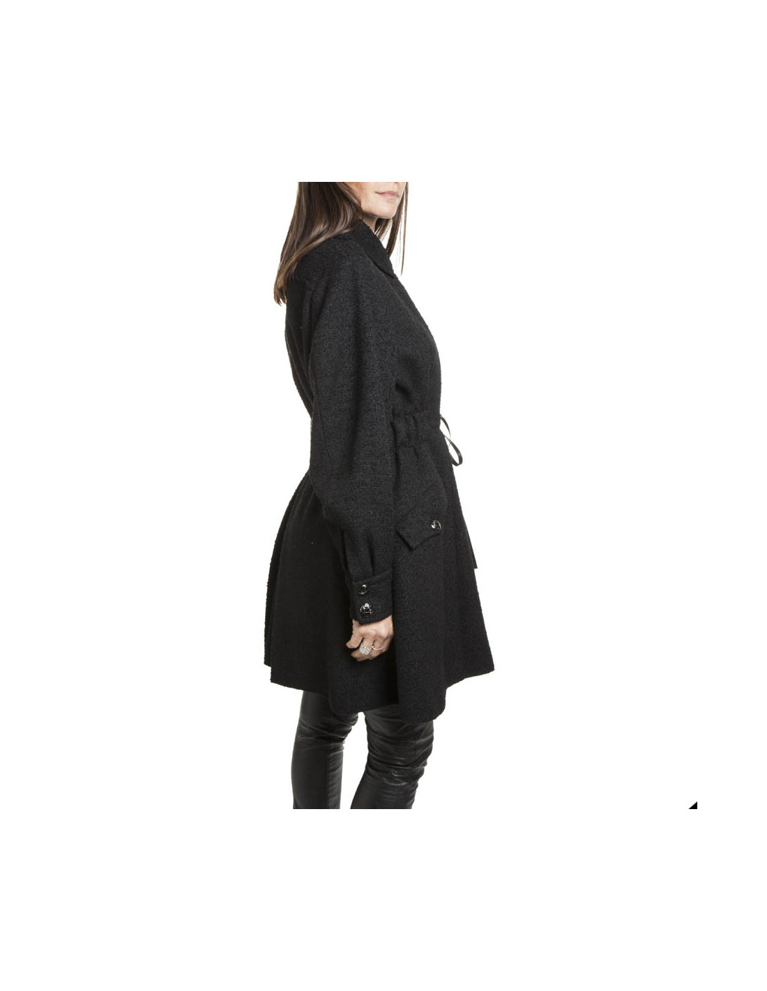 CHANEL coat in black tweed wool size 38/40FR