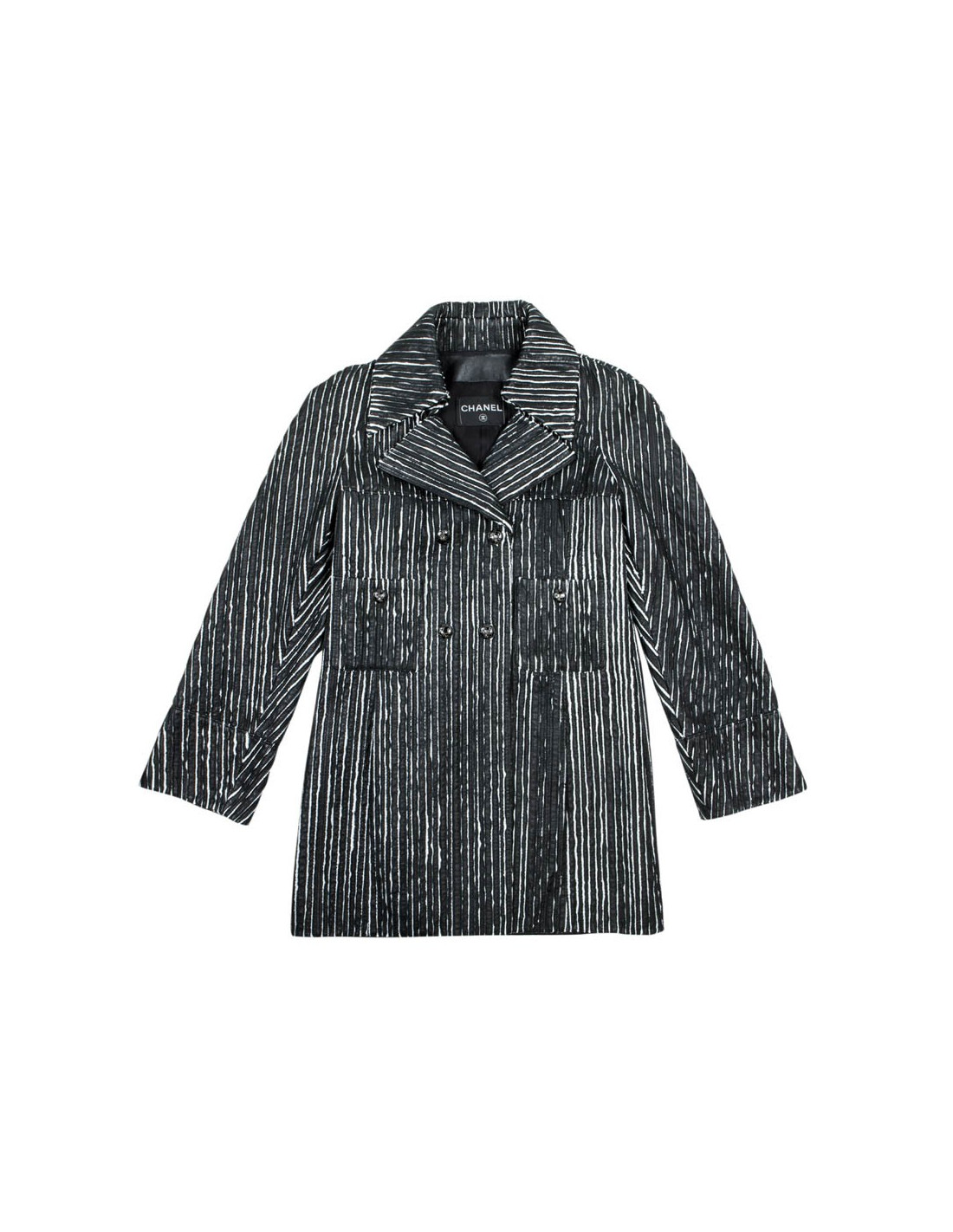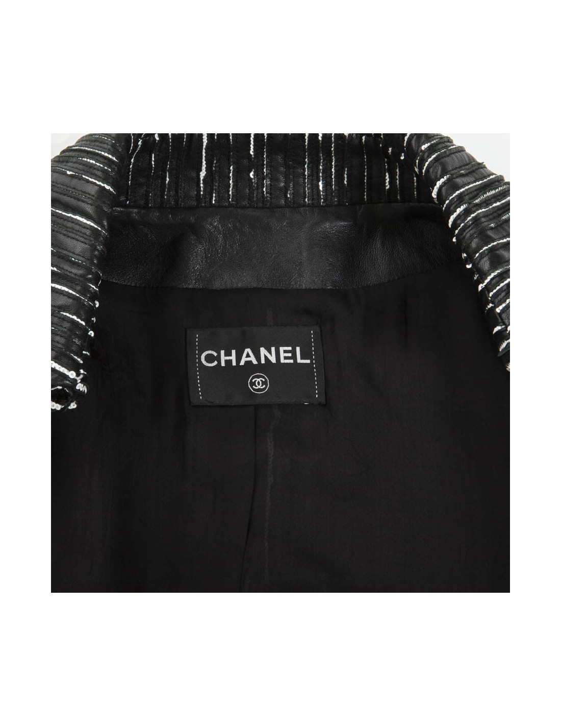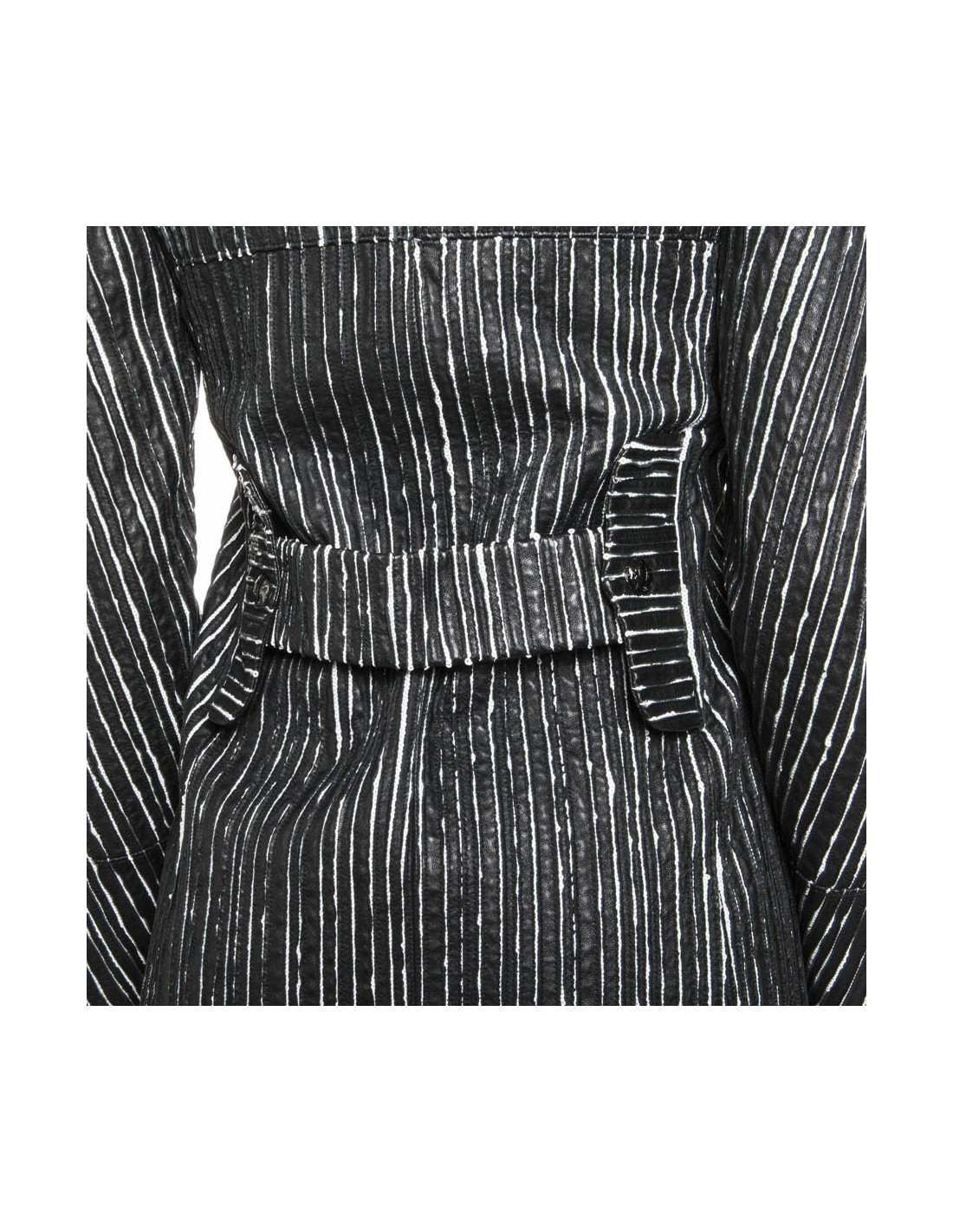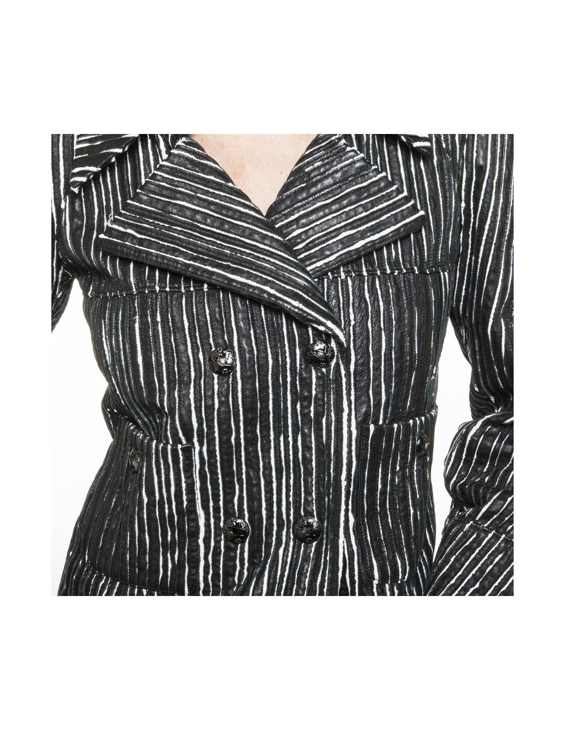 Caban CHANEL cuir rayé noir et blanc
