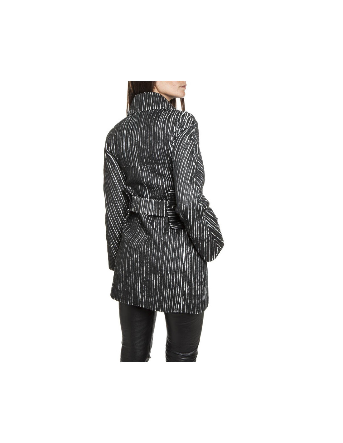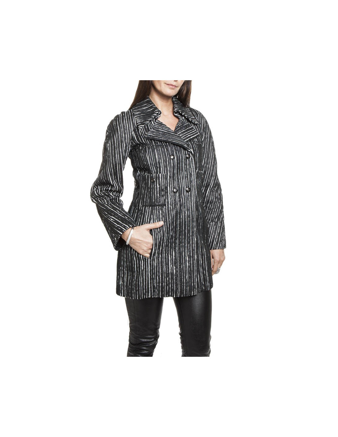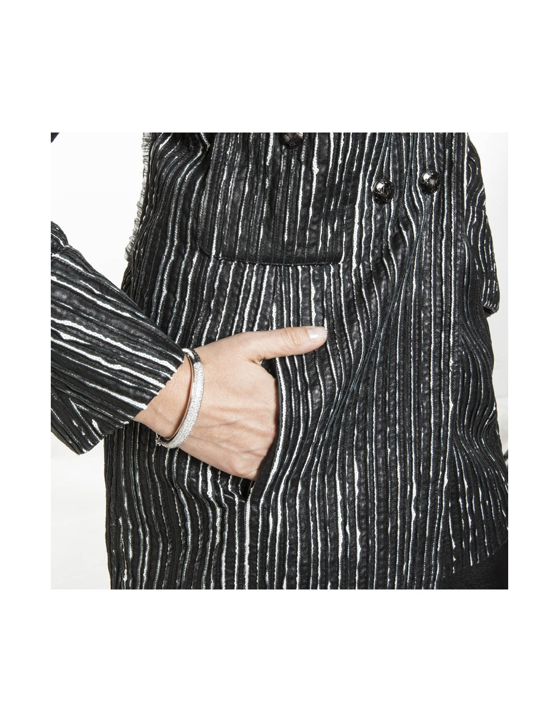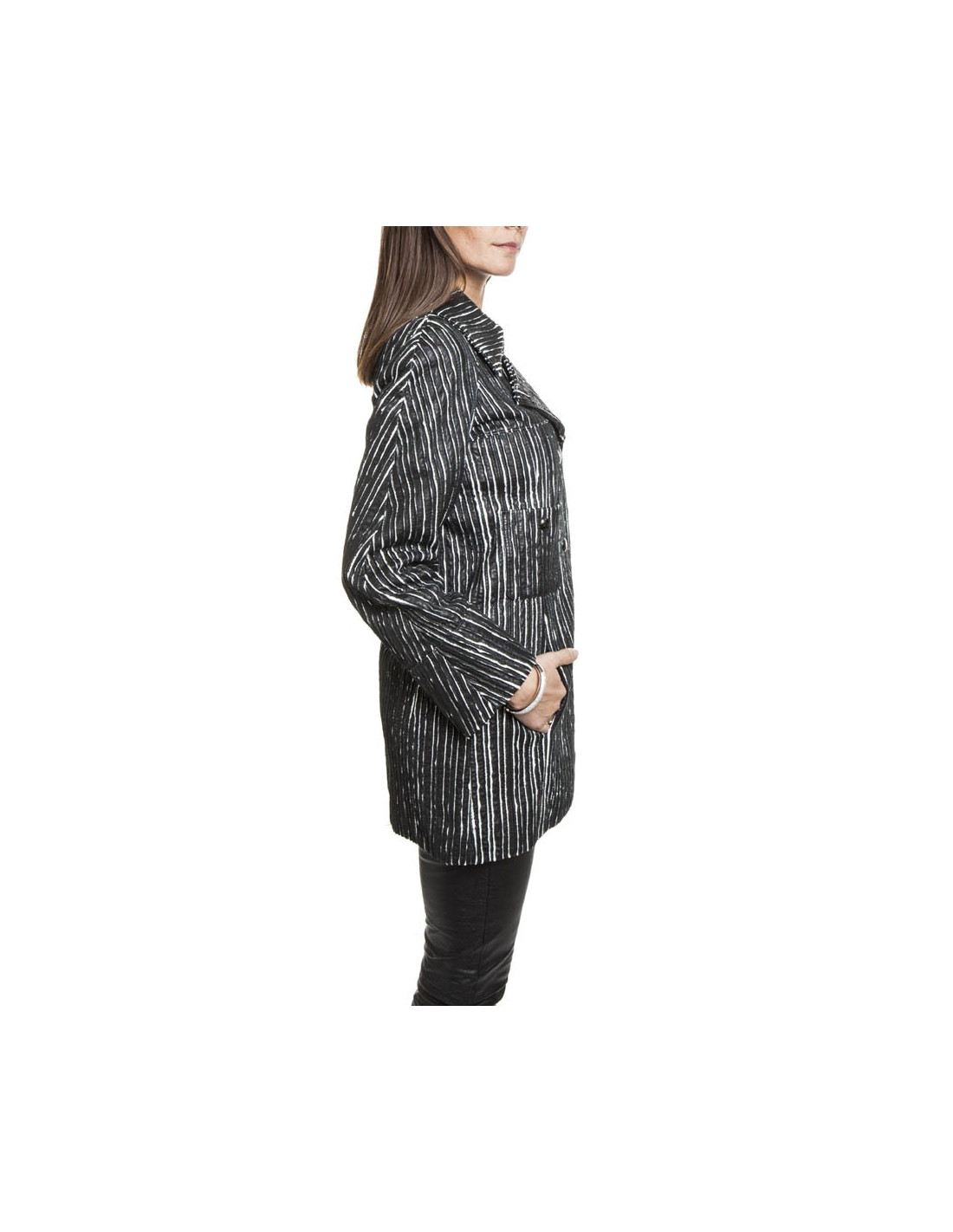 Caban CHANEL cuir rayé noir et blanc