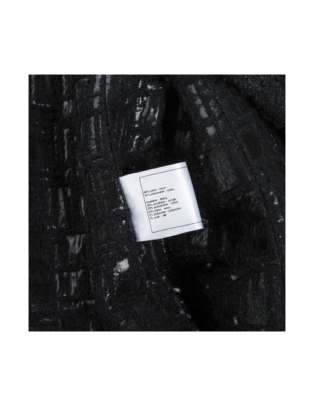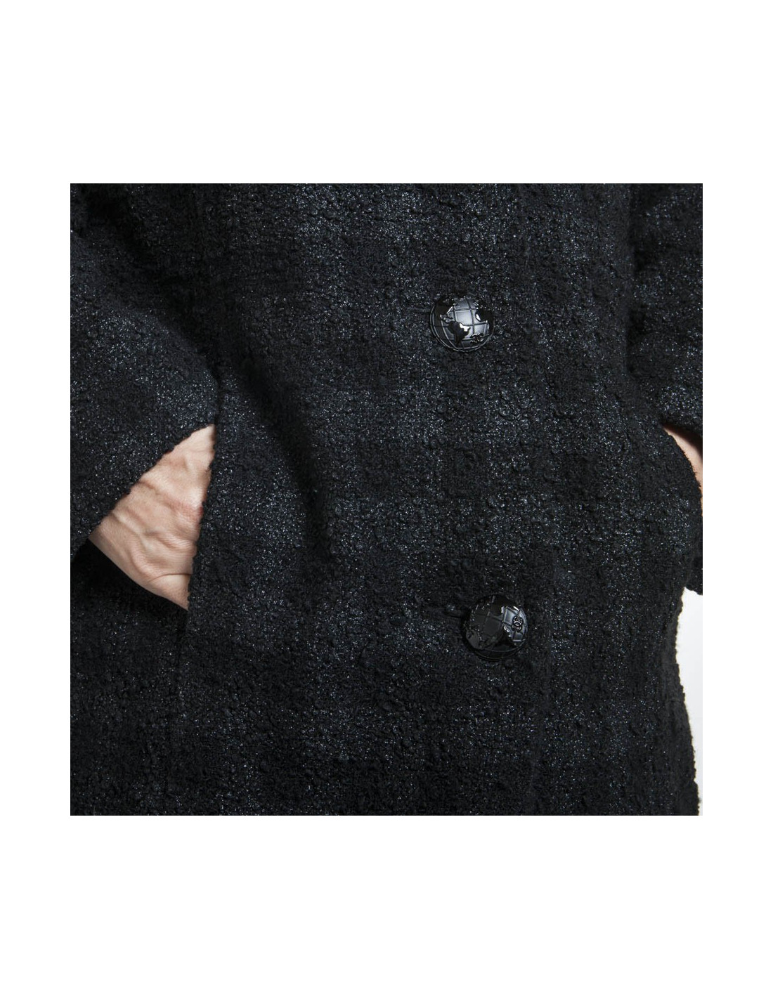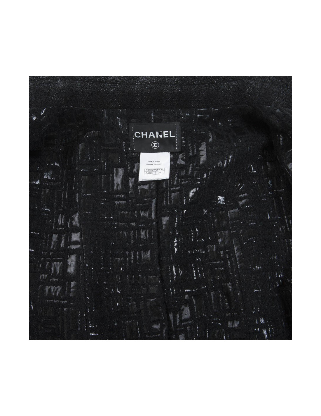 Superbe manteau CHANEL en tweed de laine noir lamé avec un très beau col.