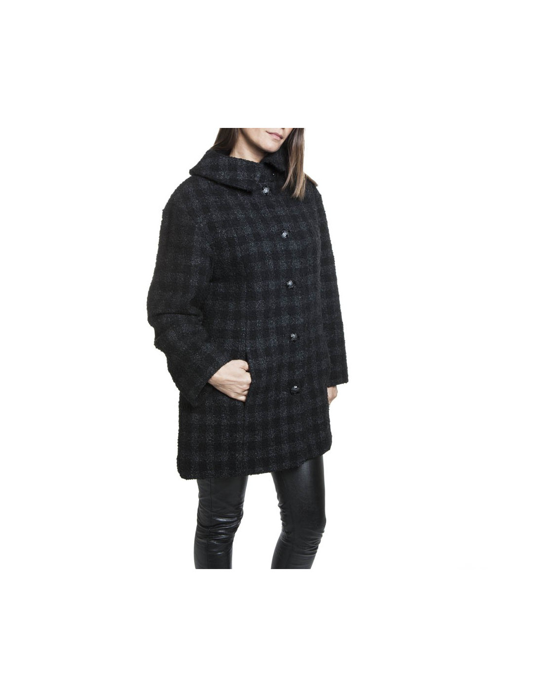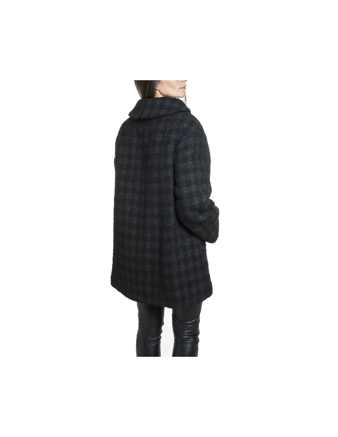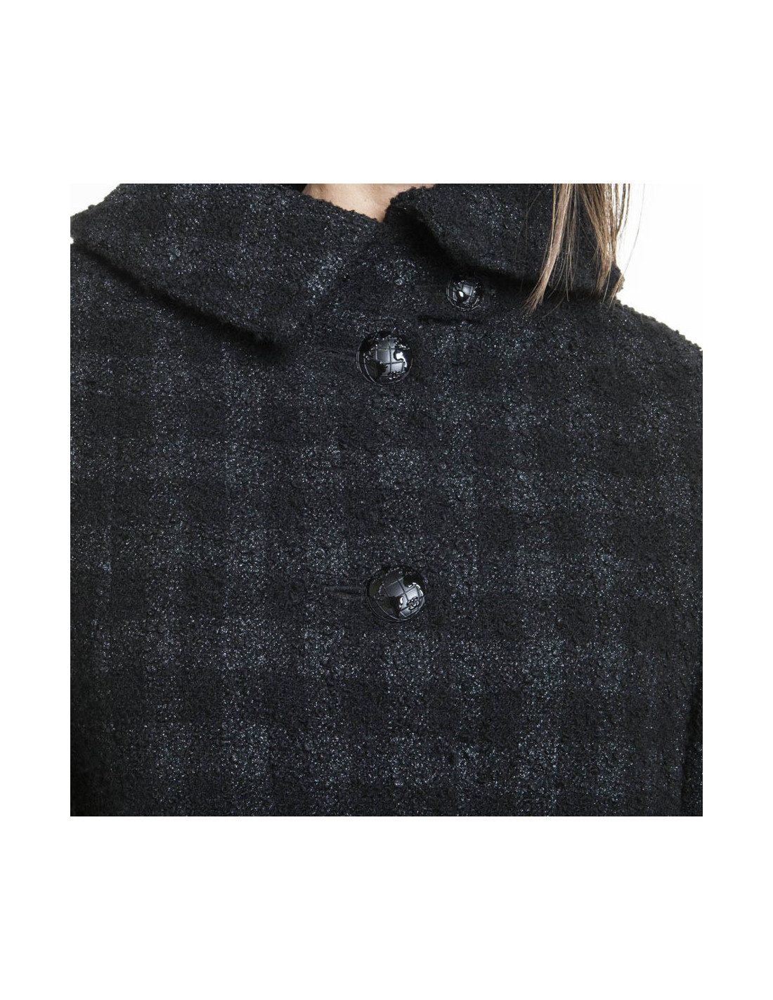 Superbe manteau CHANEL en tweed de laine noir lamé avec un très beau col.
