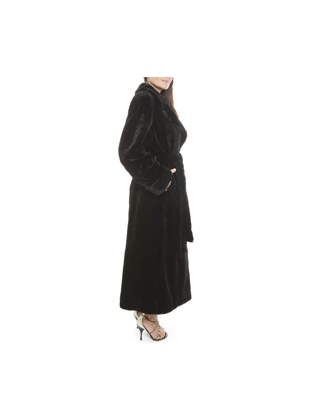 Long coat black shaved mink unbranded T40 EN