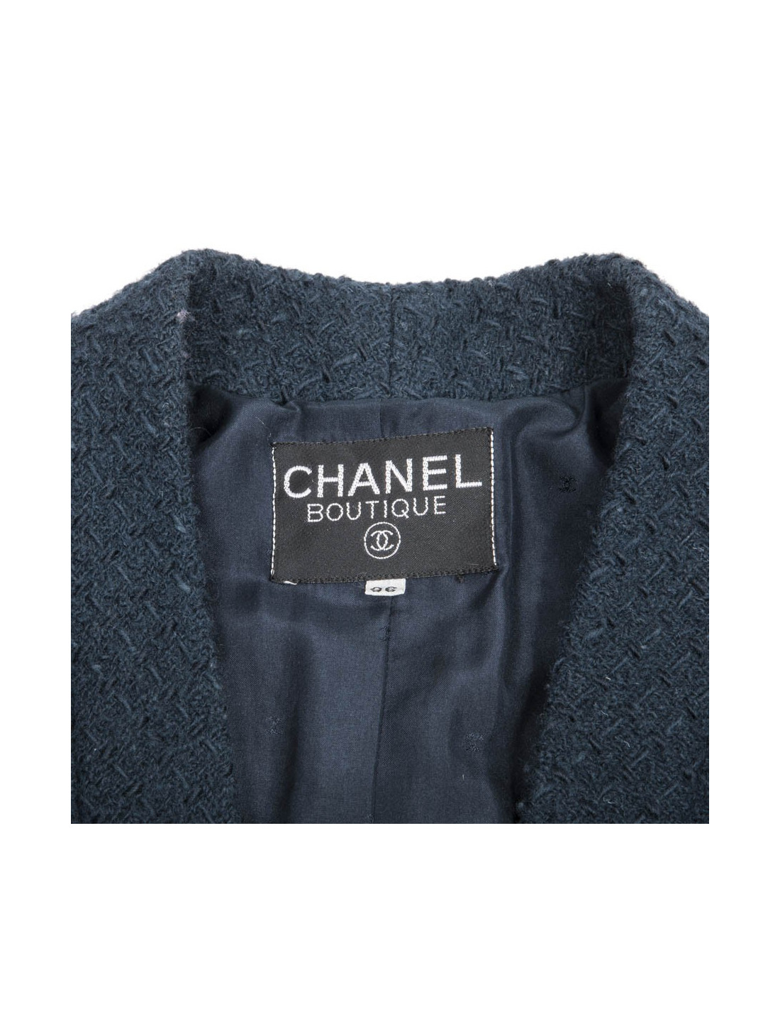 Composed of two front pockets closed by gold Chanel coco buttons. The same buttons adorn the cuffs in a row of three. chronogram CC silk lining. The coat does not close in its length.