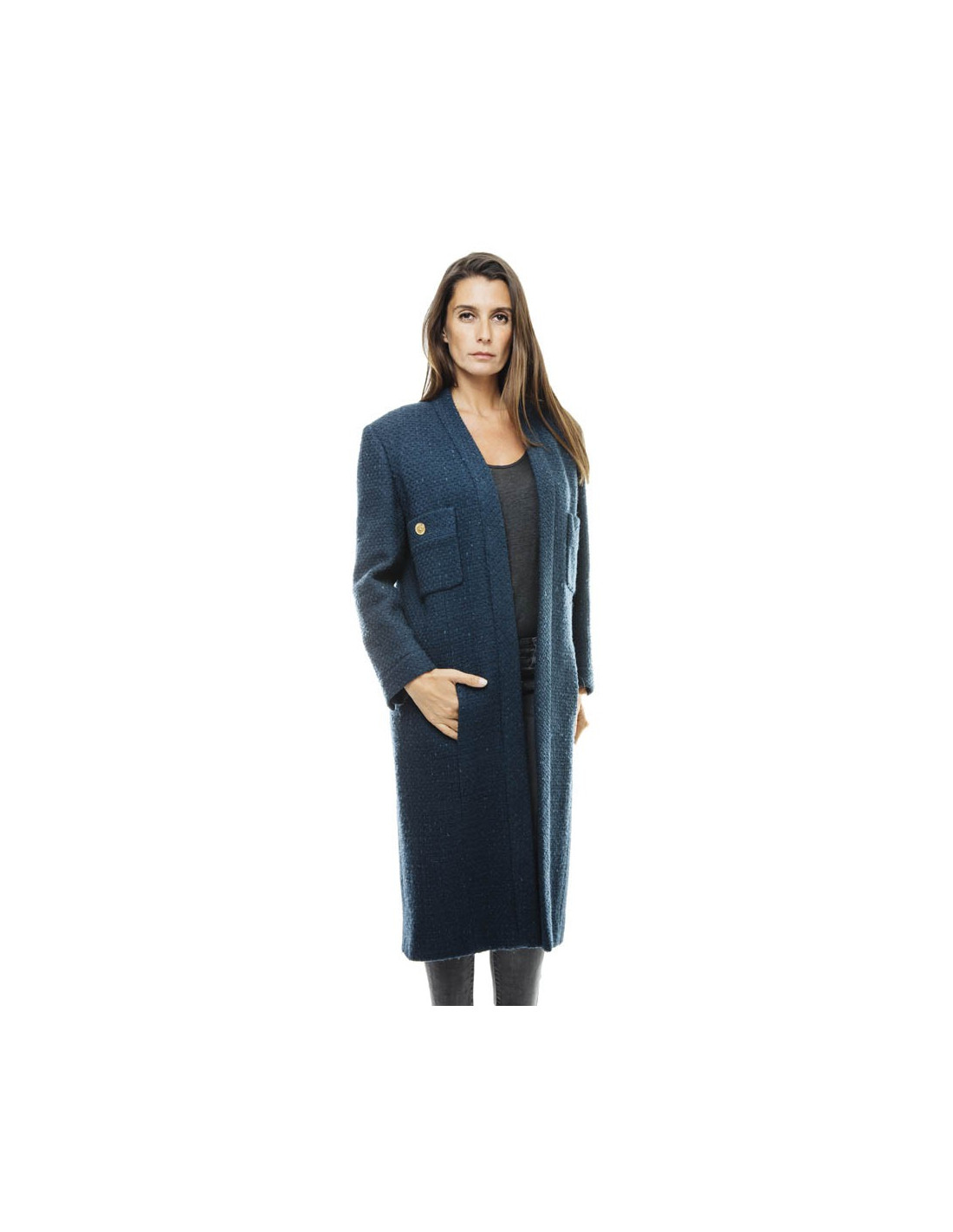CHANEL straight cut coat in blue wool size 36