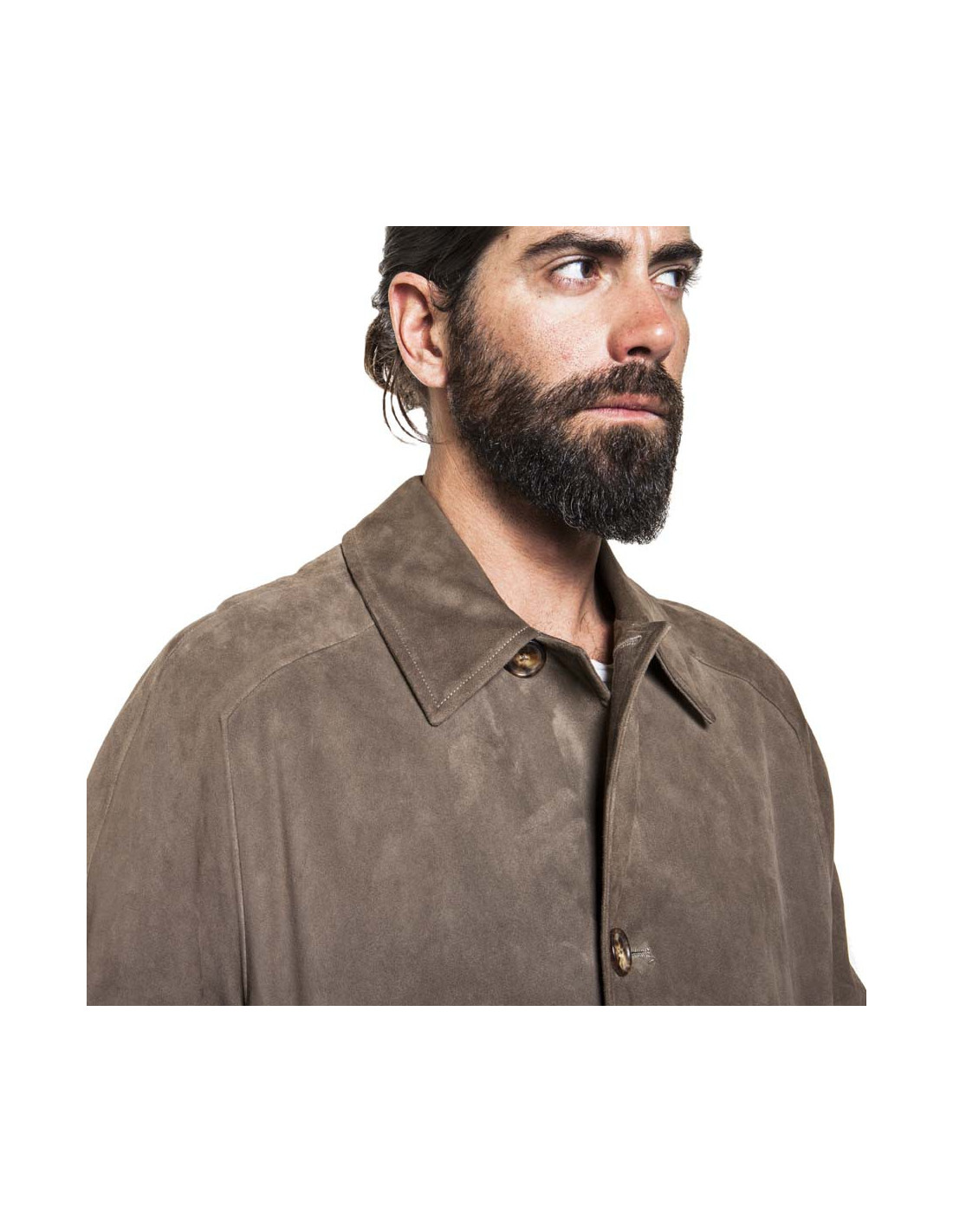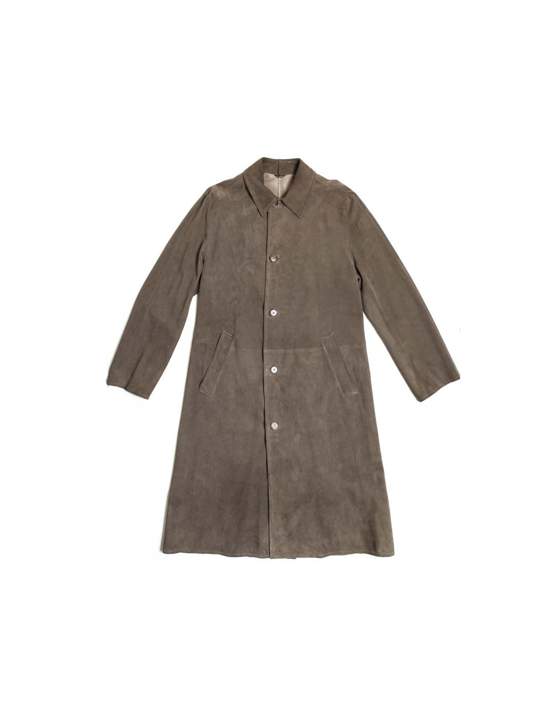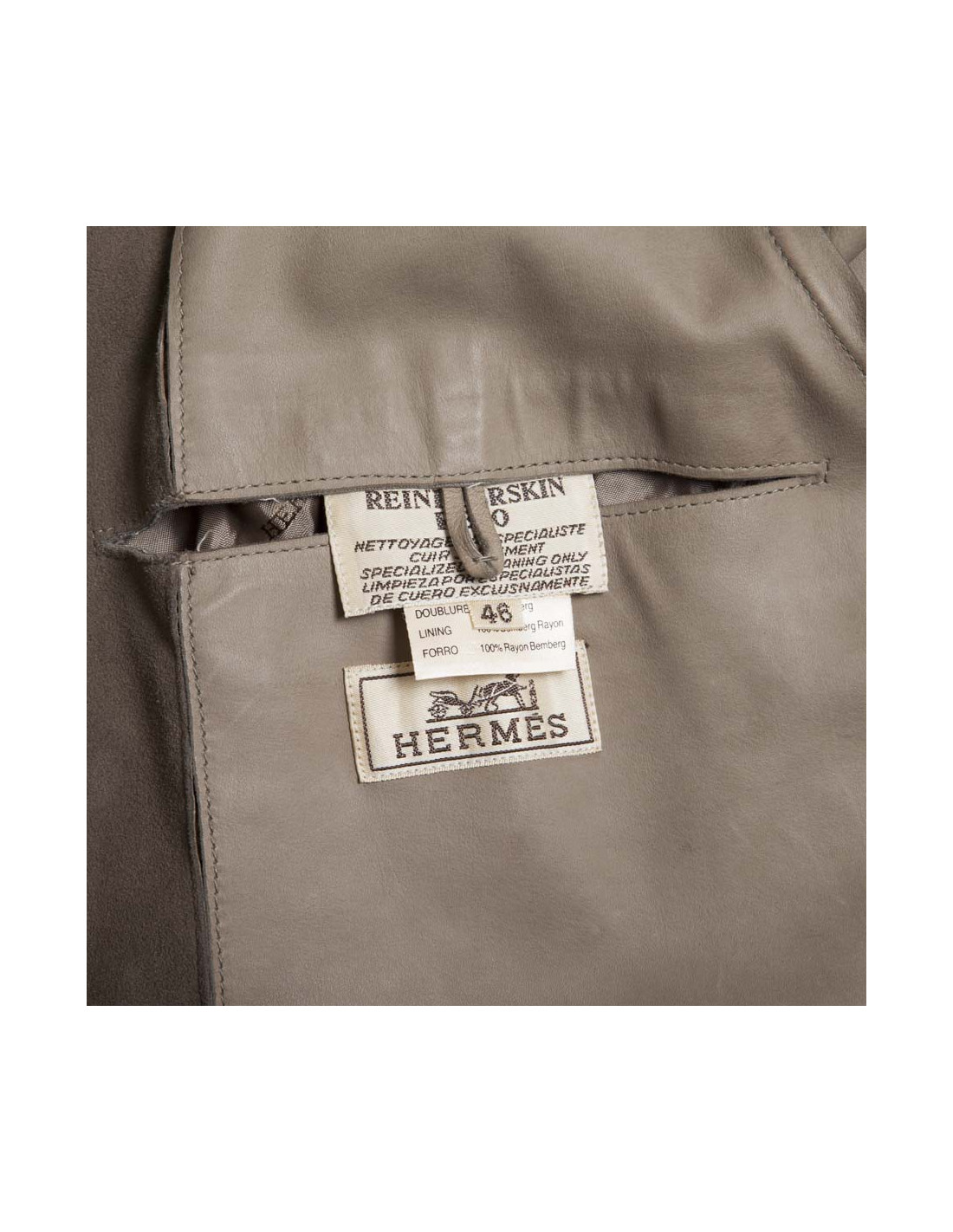 Rare. Hermes Manteau style trench coat in taupe color reindeer. The inner lining is made of smooth calfskin. There are 2 deep inner pockets lined in satin Monogram Hermès and closed by a button with the logo 'HERMES'