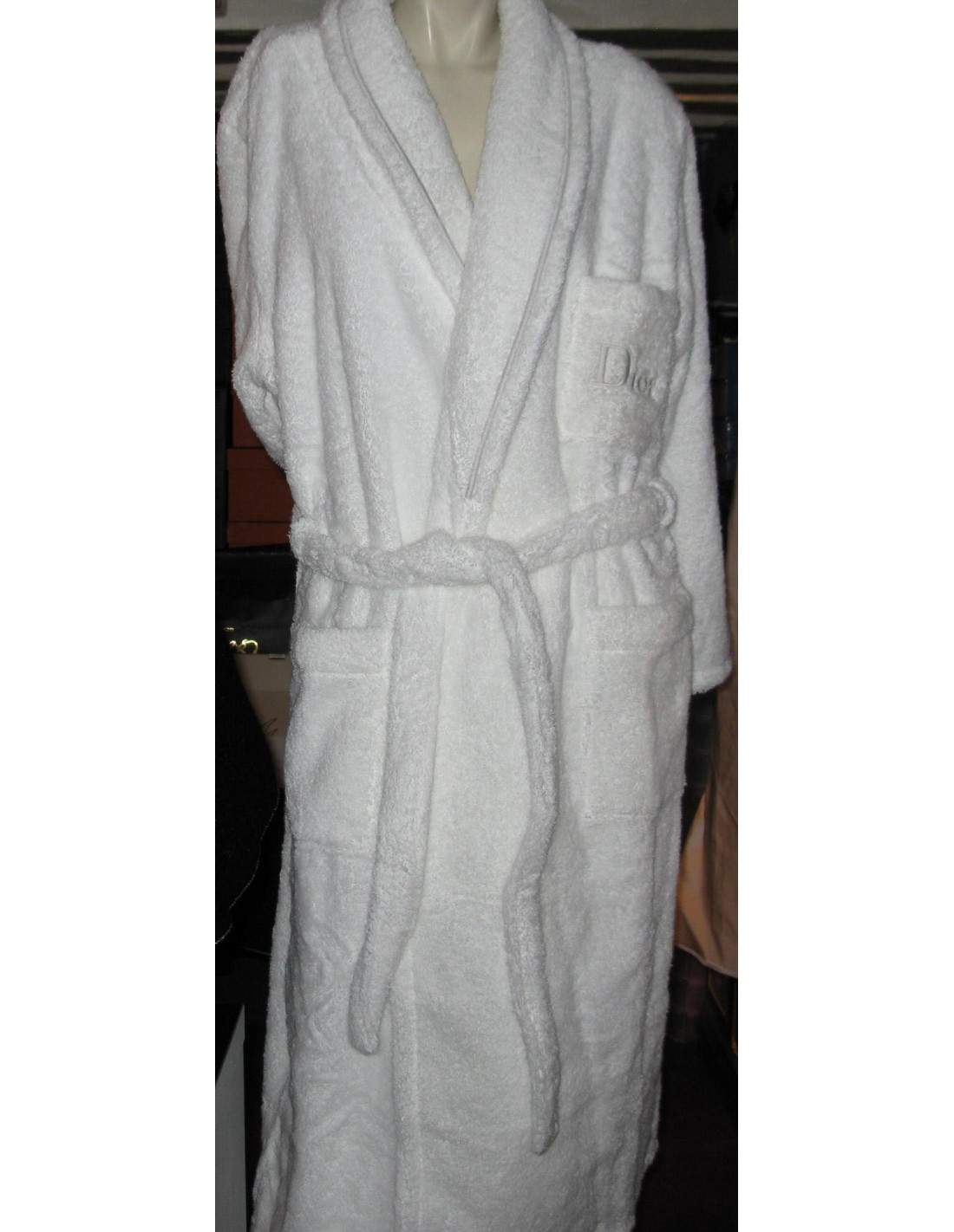 Very elegant exit of bath (or robe) CHRISTIAN DIOR for men. White cotton, high quality thick sponge is very gentle on the skin. One can distinguish the "DIOR" initials on this bathrobe pocket. It has never been worn.