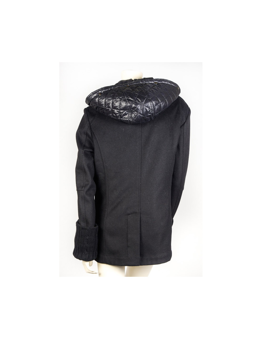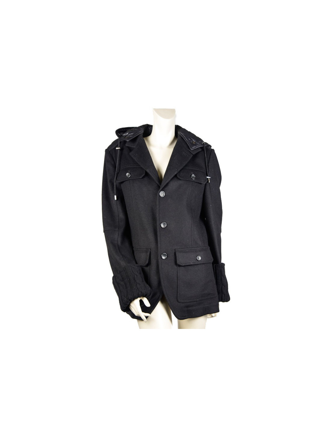 Dolce & Gabbana black parka composed a liner with hood effect independent jacket that is connected by a zipper. The parka has two pockets at the bottom and two pockets at the top, and two interior pockets, the sleeve is in wool, there are four buttons to close the parka. It is a size 48 Italian, is equivalent to a size 44 french. Very good condition.