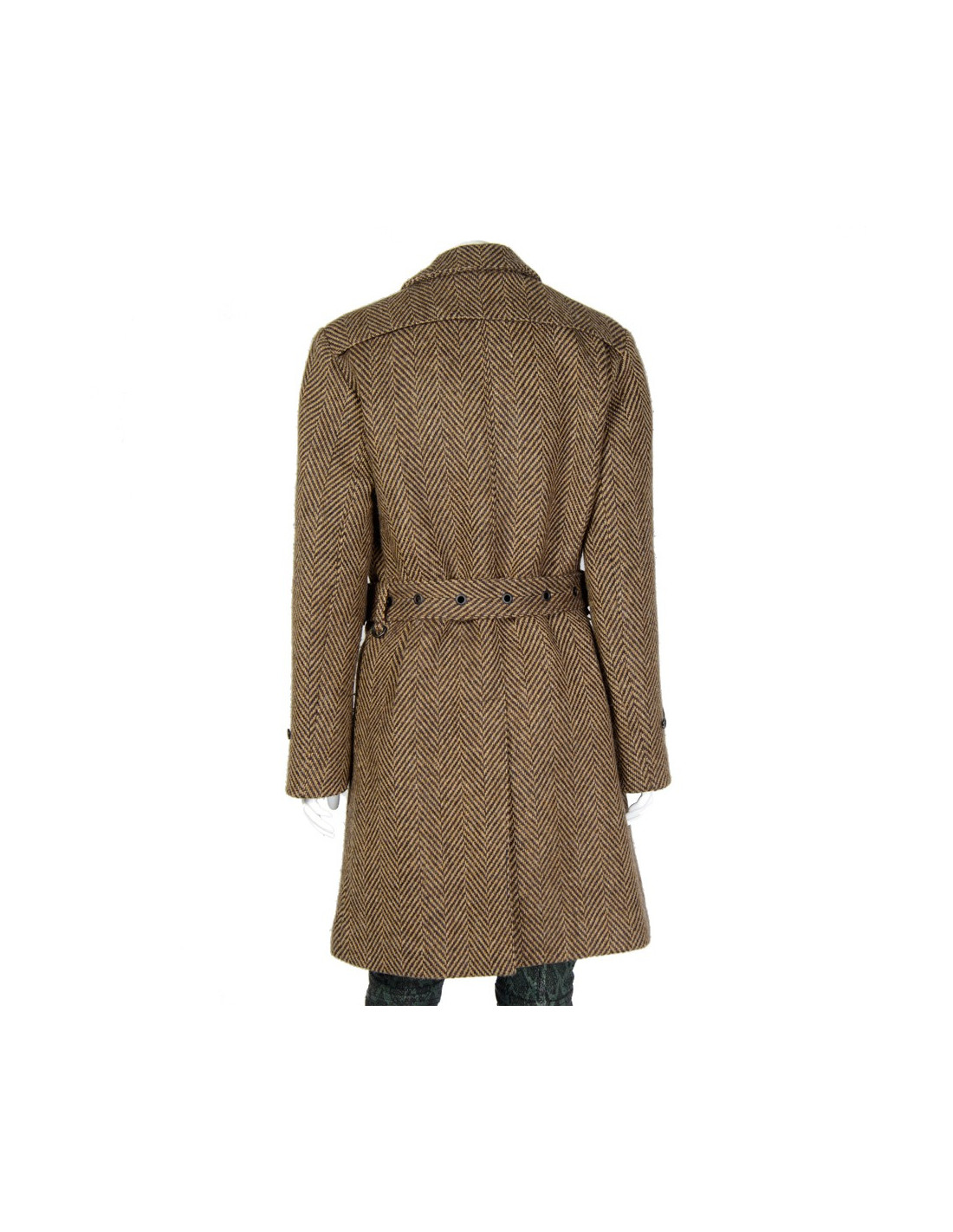 Jacket Burberry Prorsum wool Brown chevron T46. Belted trench chevron dark brown and clear. Belt loop. Two front pockets. A slot at lower back. Black inner lining. Very good condition.