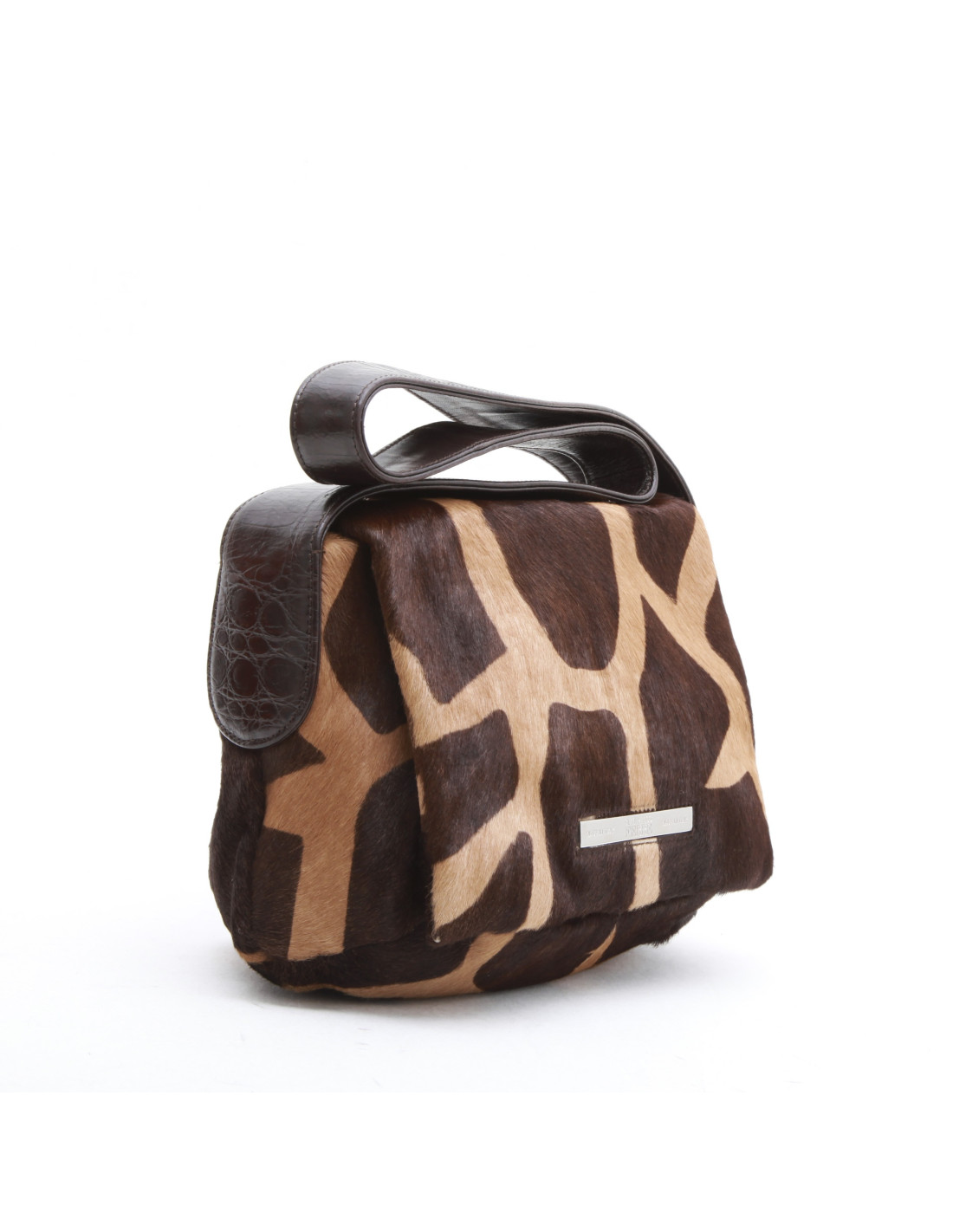 Gianfranco Ferre bag in light brown and dark brown foal. The interior is in black monogram fabric.