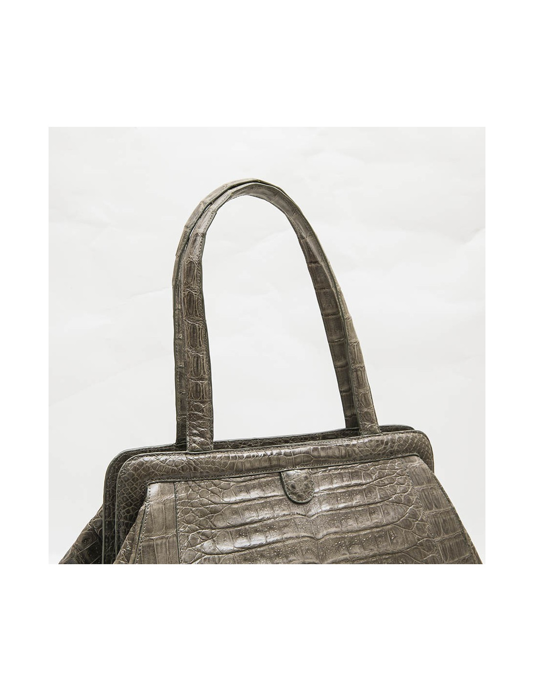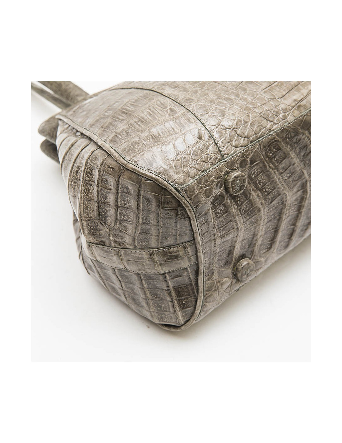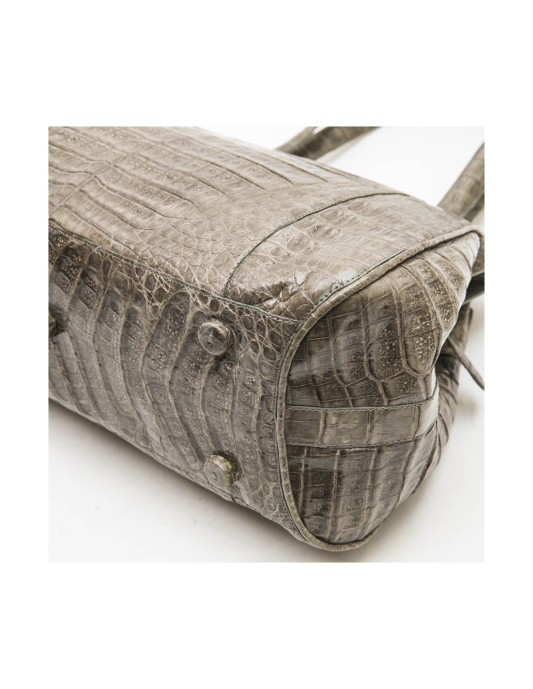 Nancy Gonzales bag in gray crocodile. Zip closure. A zipped pocket and a patch pocket inside.