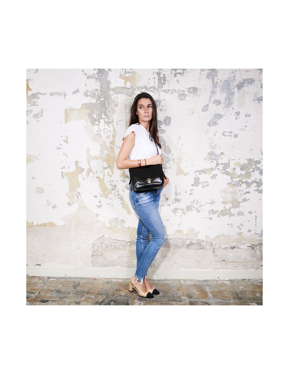 Last items in stock CROSS BODY BAG CHANEL black multi-chain caméra bag CHANEL 36679 6,800.00 € CHANEL black caméra bag Material : leatherLining: gold leatherColor : blackMeasurements : 24 × 14.5 × 6.5 cmHandles (x2) : simple 130 cm, double 74 cmHologram: 27..Authenticity card: yesYear : 2019Hardware : gold finish metalDetails : Can be worn on the shoulder or cross-body. On the front, gold and silver chains in different shapes and sizes and pearls... Add to cart