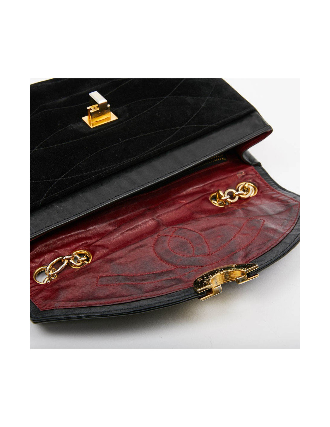 Last items in stock 255 CHANEL CHANEL Maxi 2.55 bag crumpled black calfskin leather CHANEL 33300 8,000.00 € CHANEL Maxi 2.55 black crumpled calfskin leather Condition : very goodMade in ItalyModel: VanityMaterial : crumpled calfskin leatherColor : blackLining : burgundy leatherMeasurements : 31.5 x 20 x 10 cmShoulder strap: simple 96 cm, double 60 cmHologram : 1184...Authenticity card: noHardware : aged silver finish metalDetails: 2.55 clasp, double flap... Add to cart