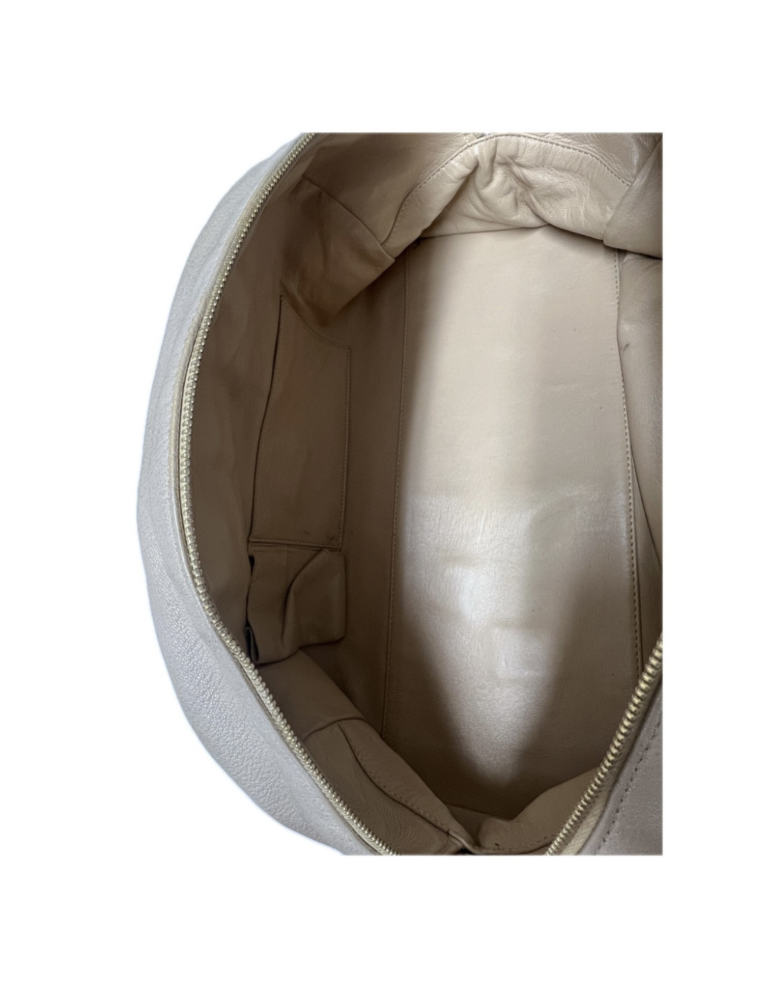 'Bowling' bag in golden beige grained leather from Maison Chanel. Golden jewelry. Zip closure. The interior is in smooth beige lambskin with a large zipped pocket and two smaller ones. It has been cleaned and repainted in the same color.