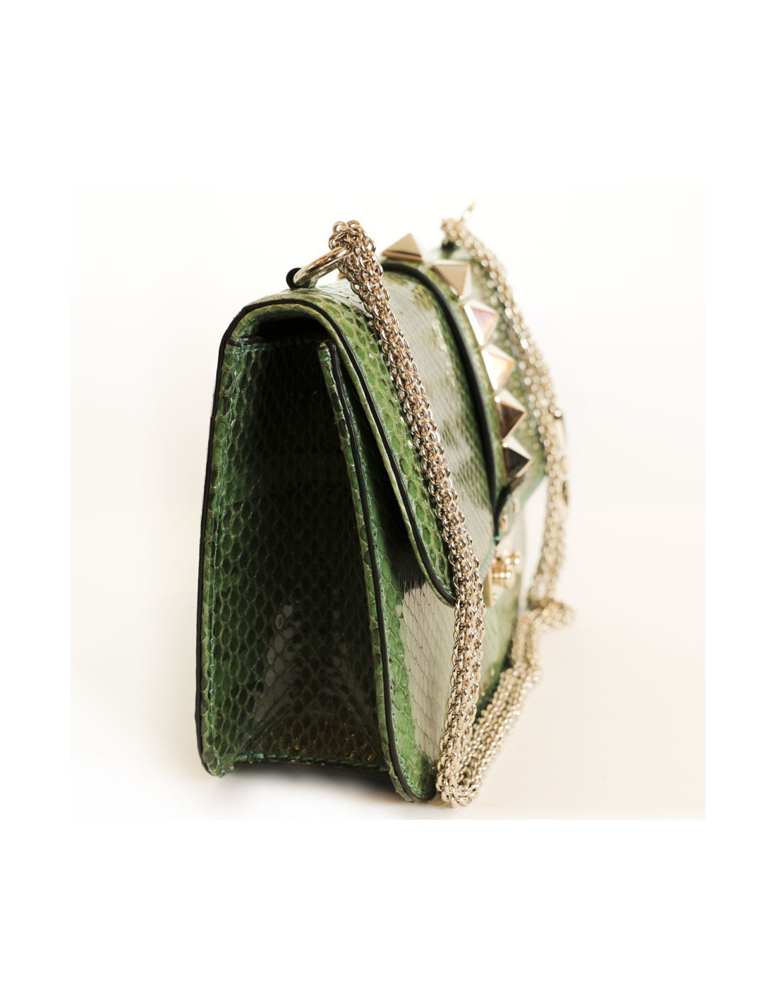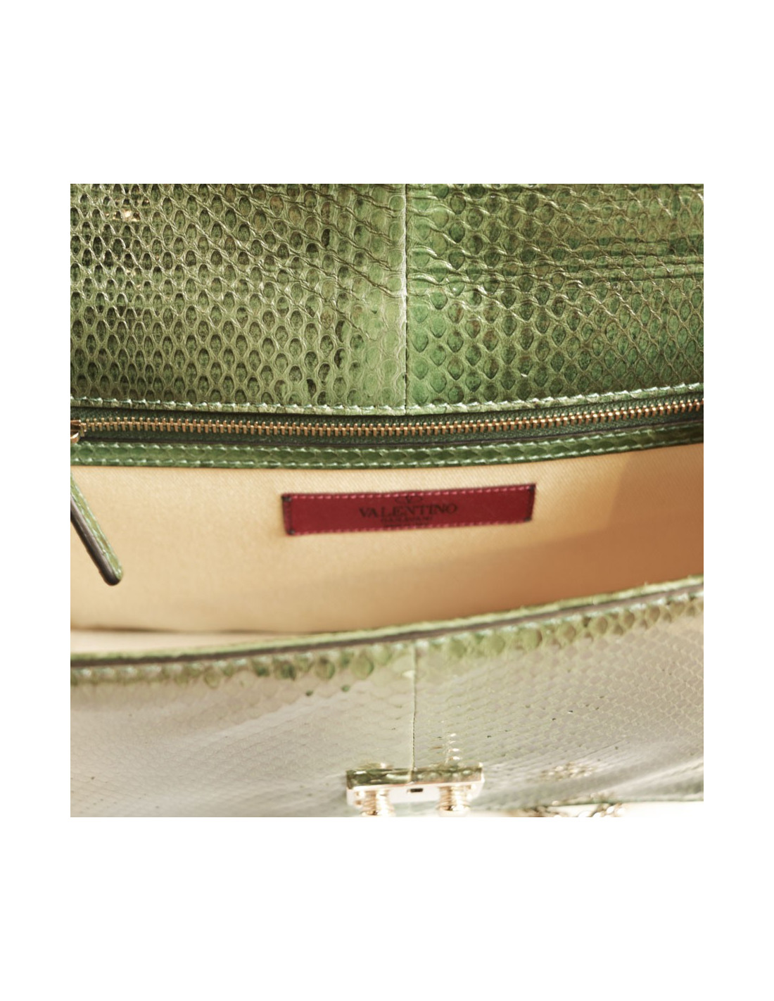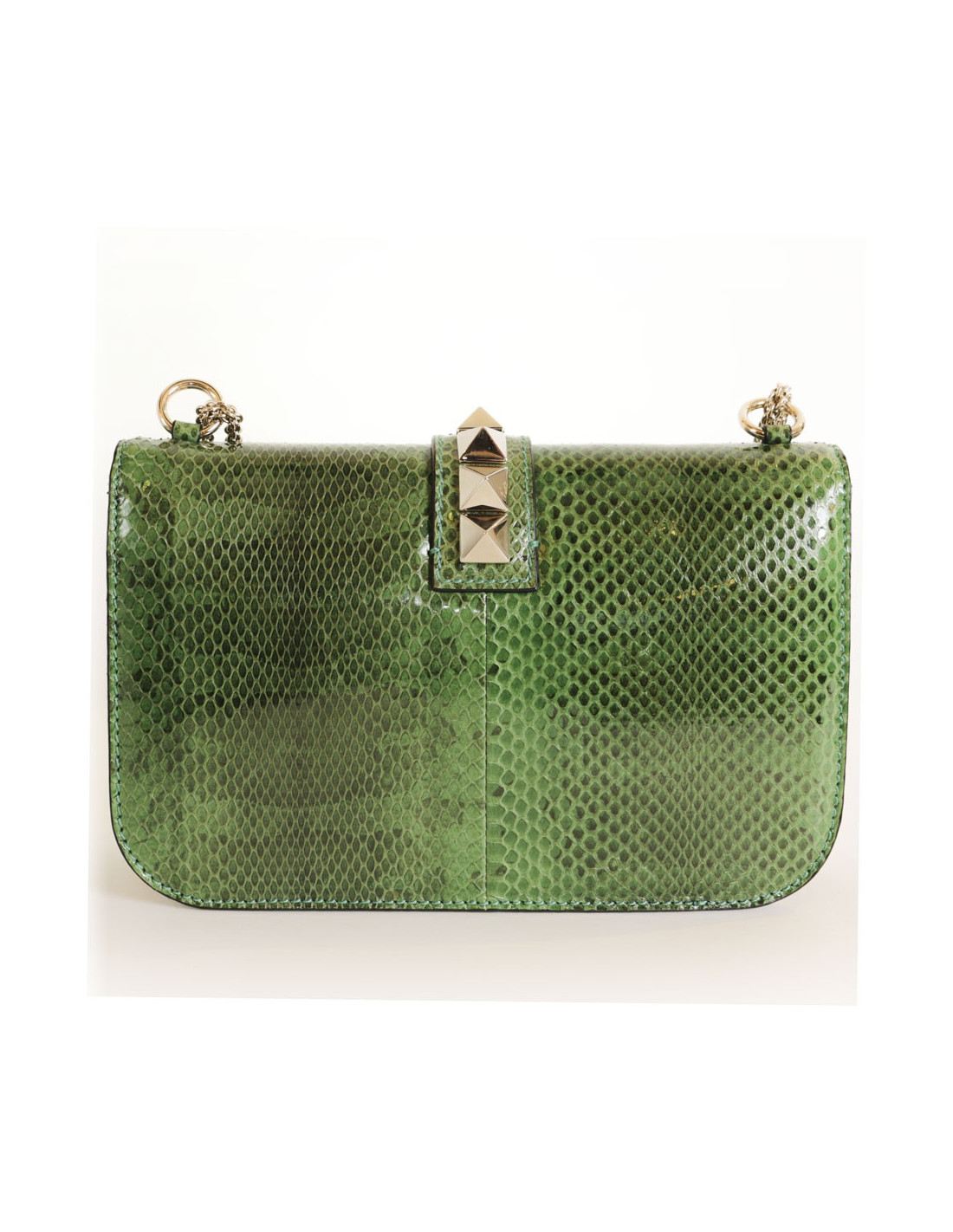 Very elegant bag Valentino Garavani 'Vavavoom' bag in green grass python leather and pale gold hardware. In perfect condition.