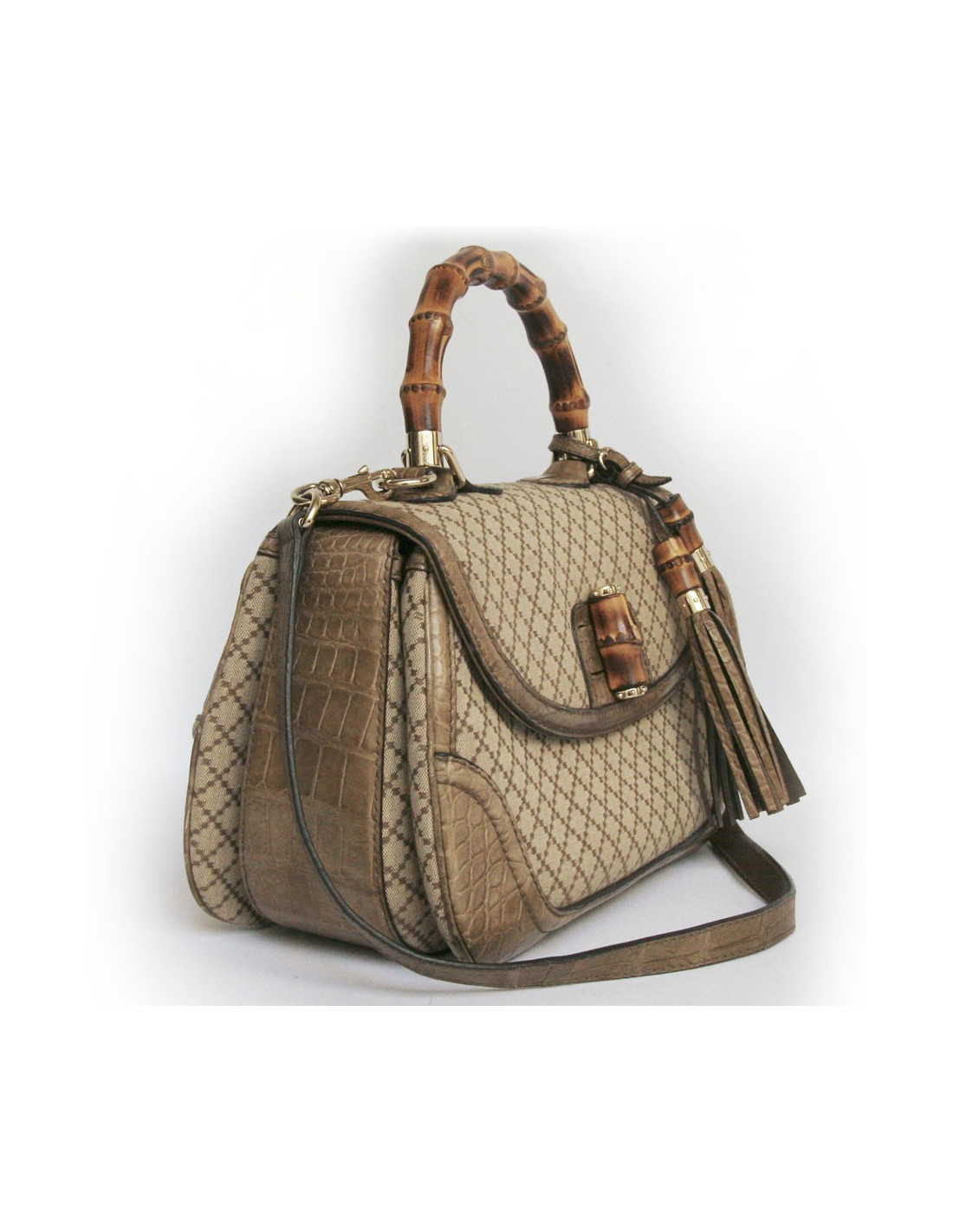 GUCCI 'Bamboo' model bag in canvas and crocodile