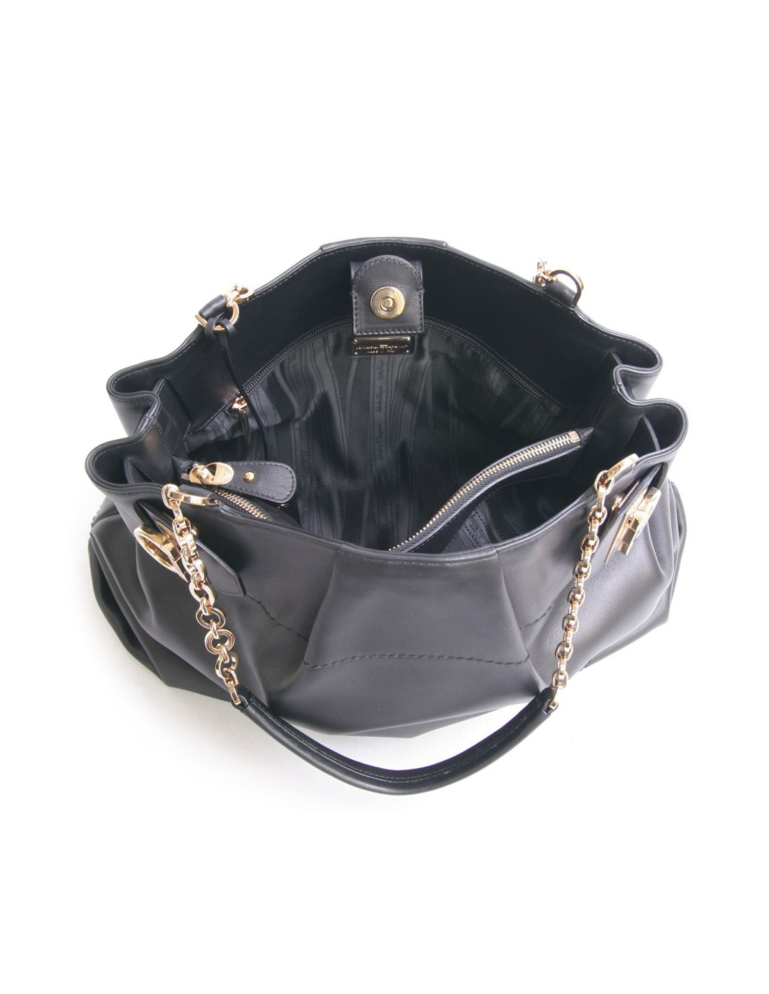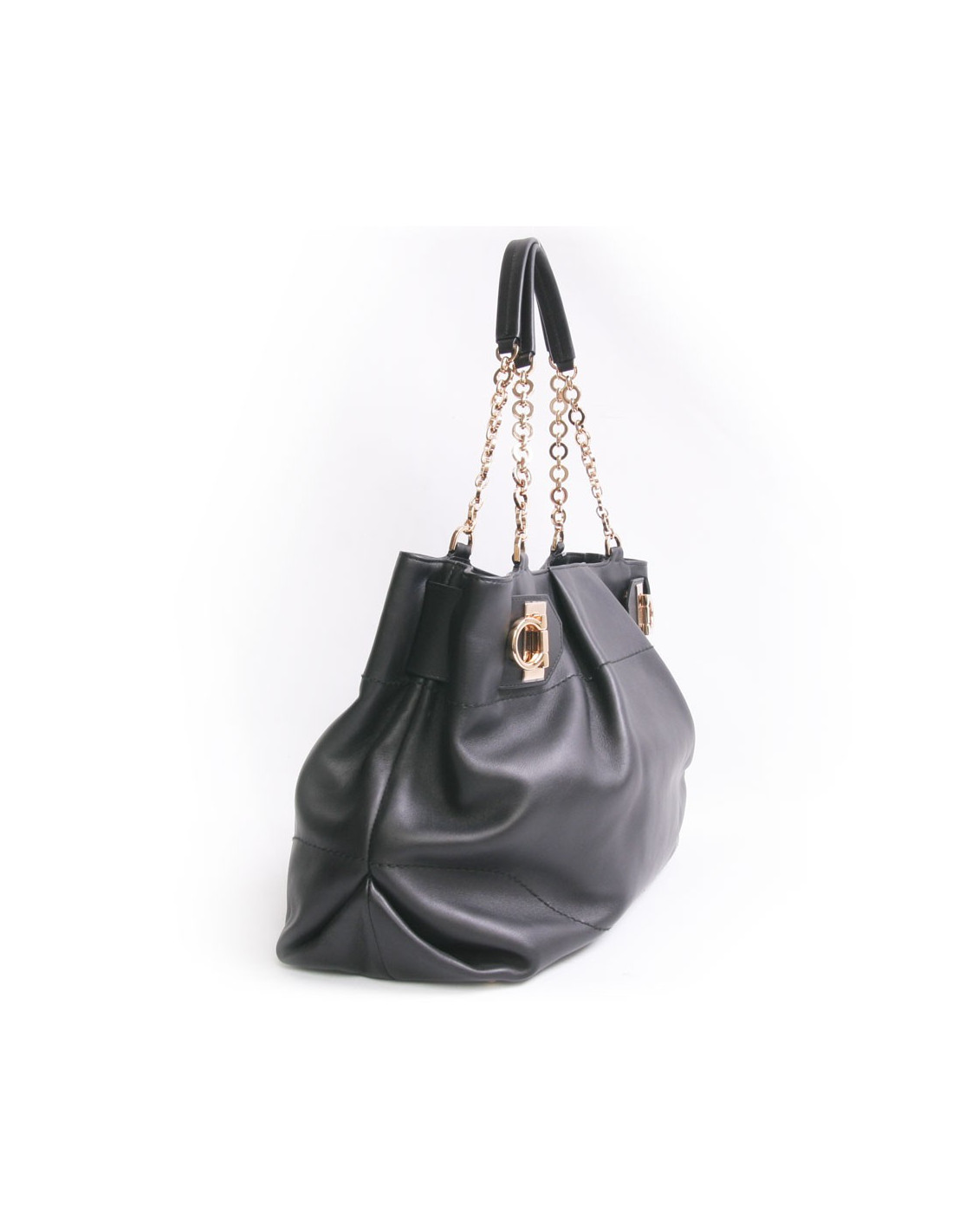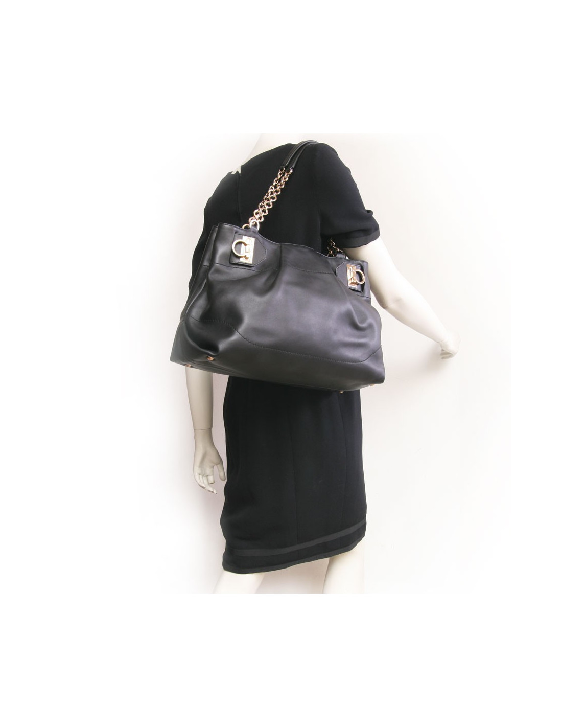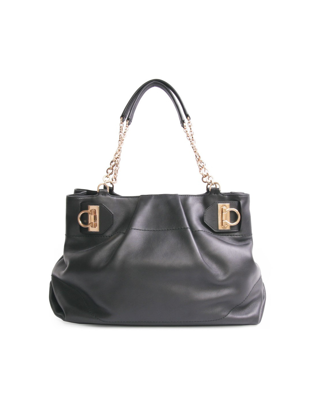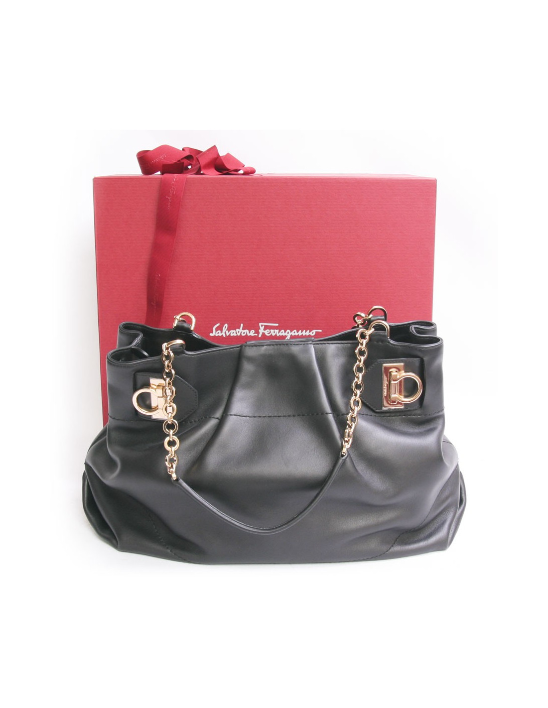 Lovely bag Salvatore Ferragamo black smooth leather. The jewelry is gold metal. Double handle. The Interior is black monogram canvas. Two separated by a large zipped Pocket storage spaces. Closing pressure. Collection fall - winter 2012/13. In very good condition. Been very little.