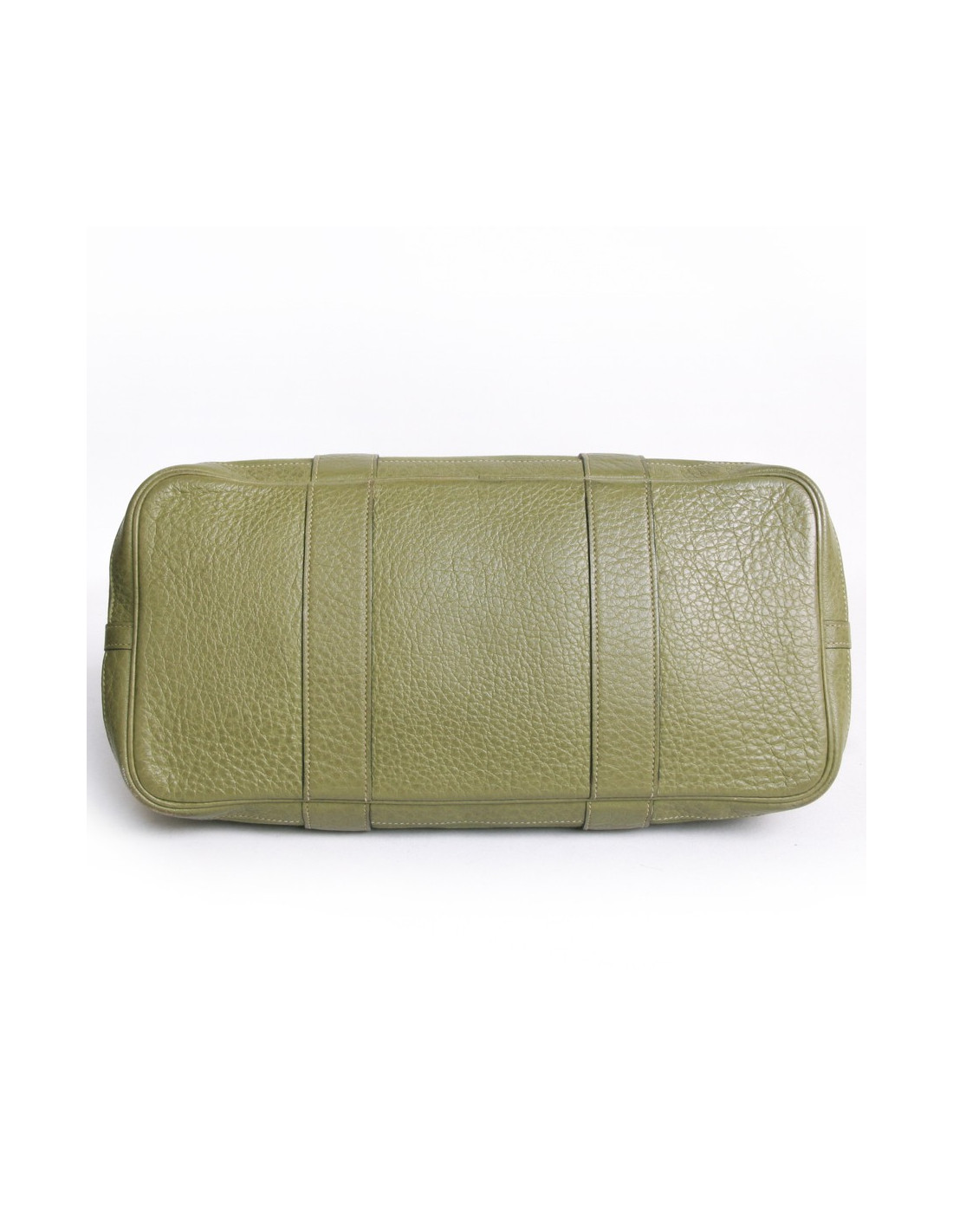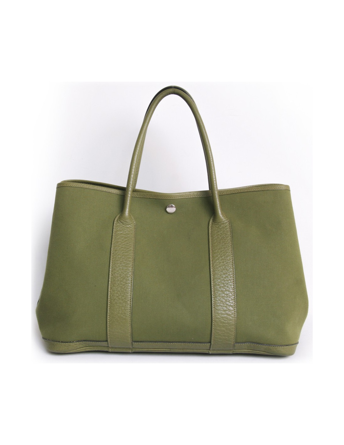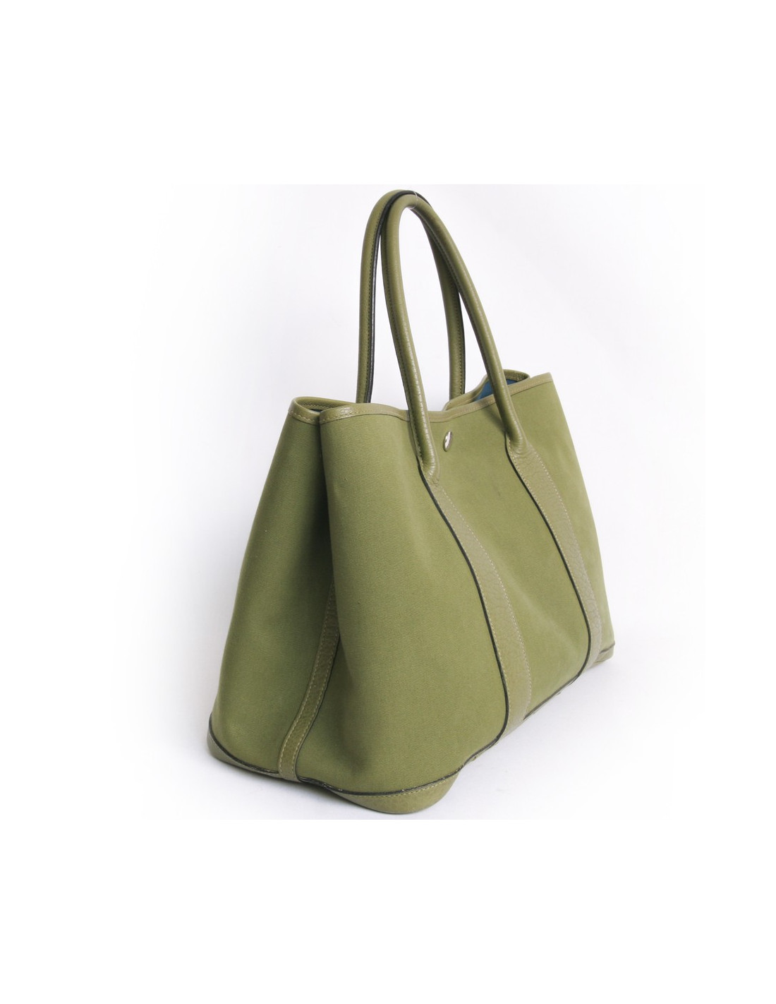 HERMES Garden party bag in khaki canvas and leather two-tone clemence taurillon