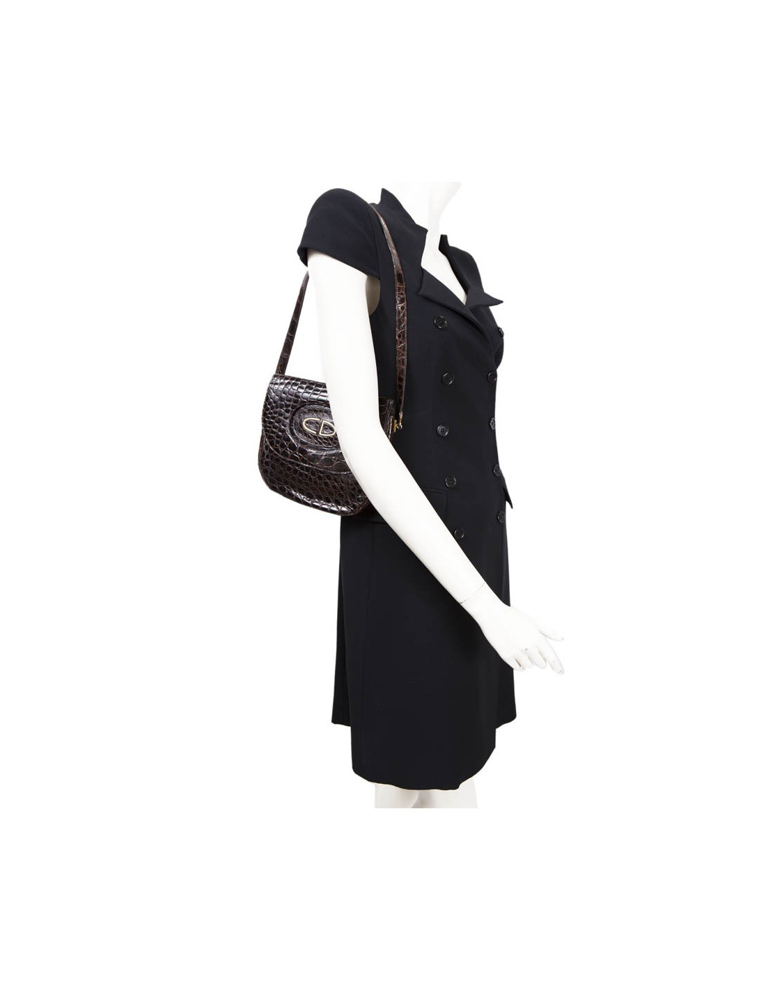 Christian Dior shoulder bag in brown crocodile leather and gilded hardware.