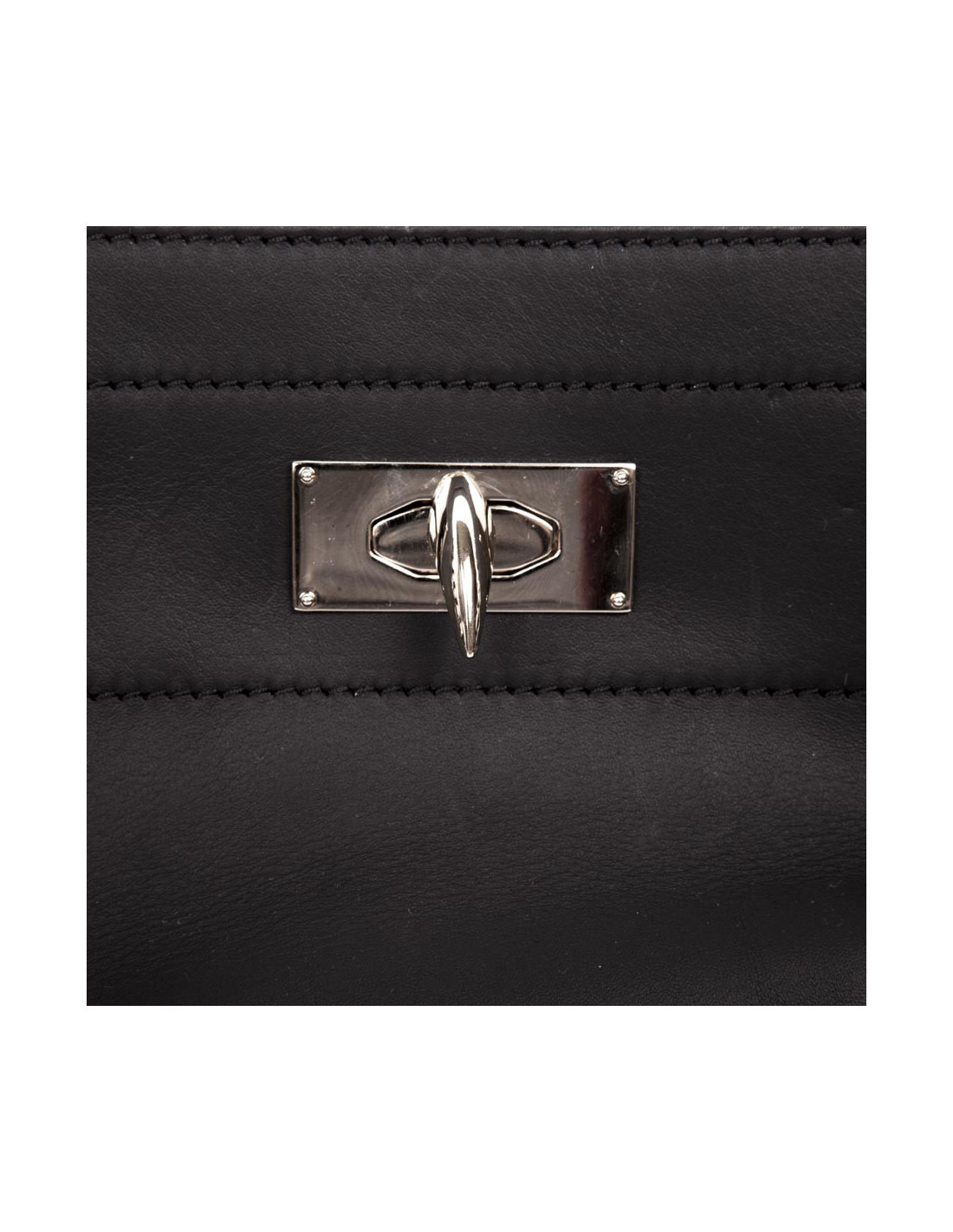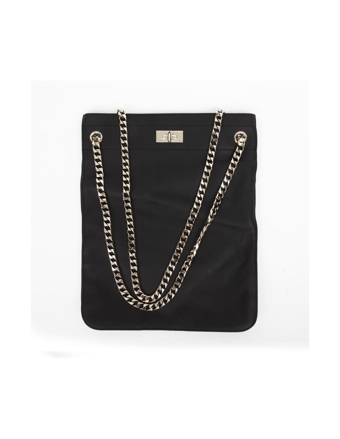 Givenchy Tote black matte leather bag. The jewelry is gold metal. The Interior is black cloth with a large zippered pocket. In very good condition. Some visible scratches on the bag.