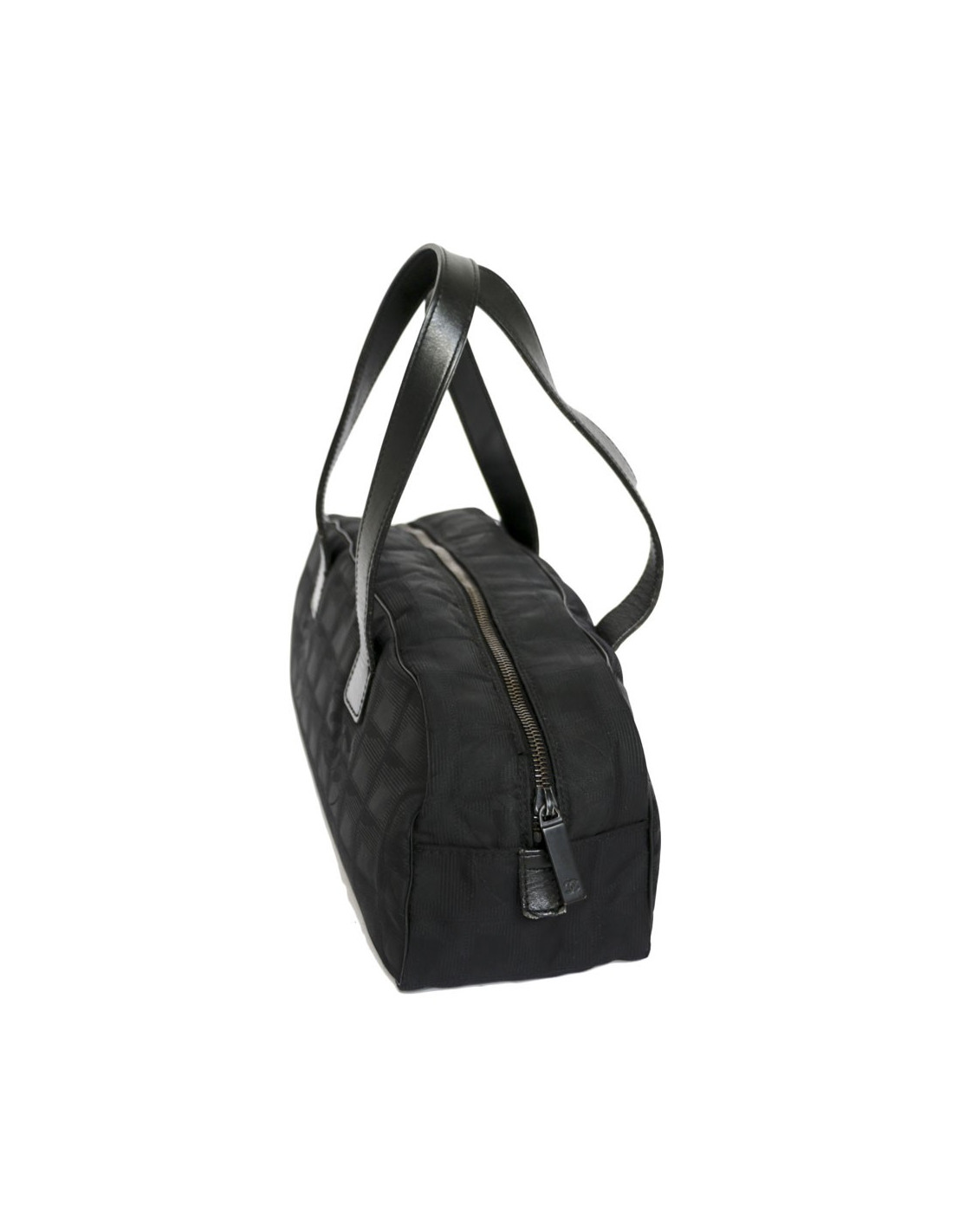 Black monogram canvas of the House of Chanel bag. Zipped. Black metal jewelry. The Interior is black cloth with a zipped pocket. door hand or shoulder to help two black leather handles. Hologram: 6849. No authenticity card.