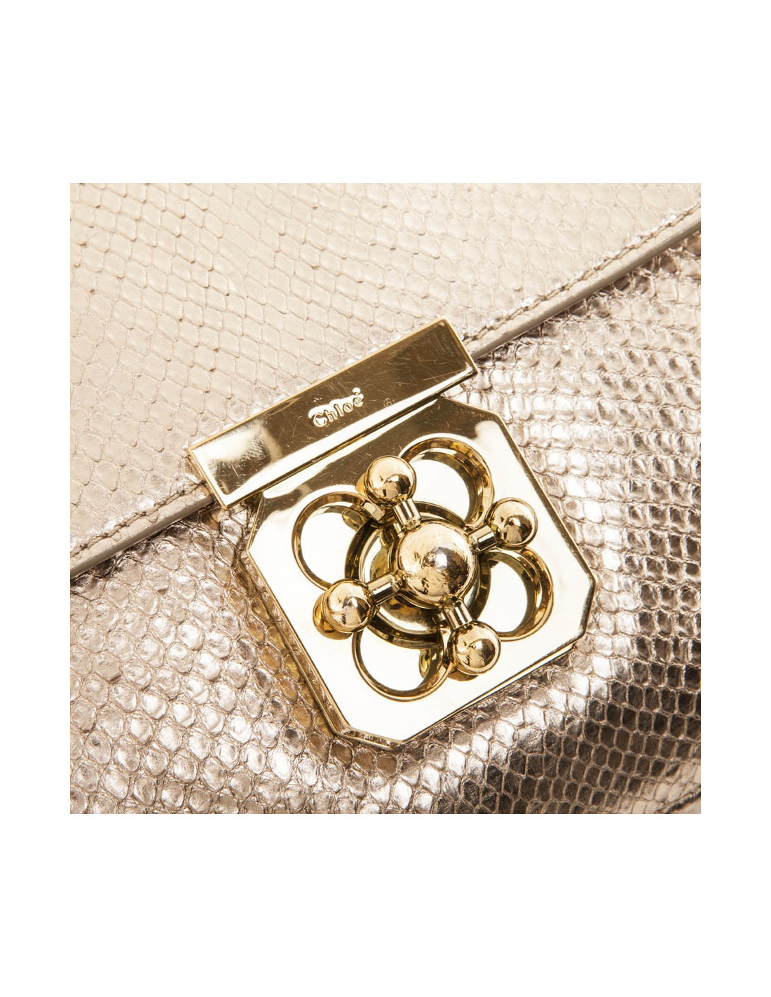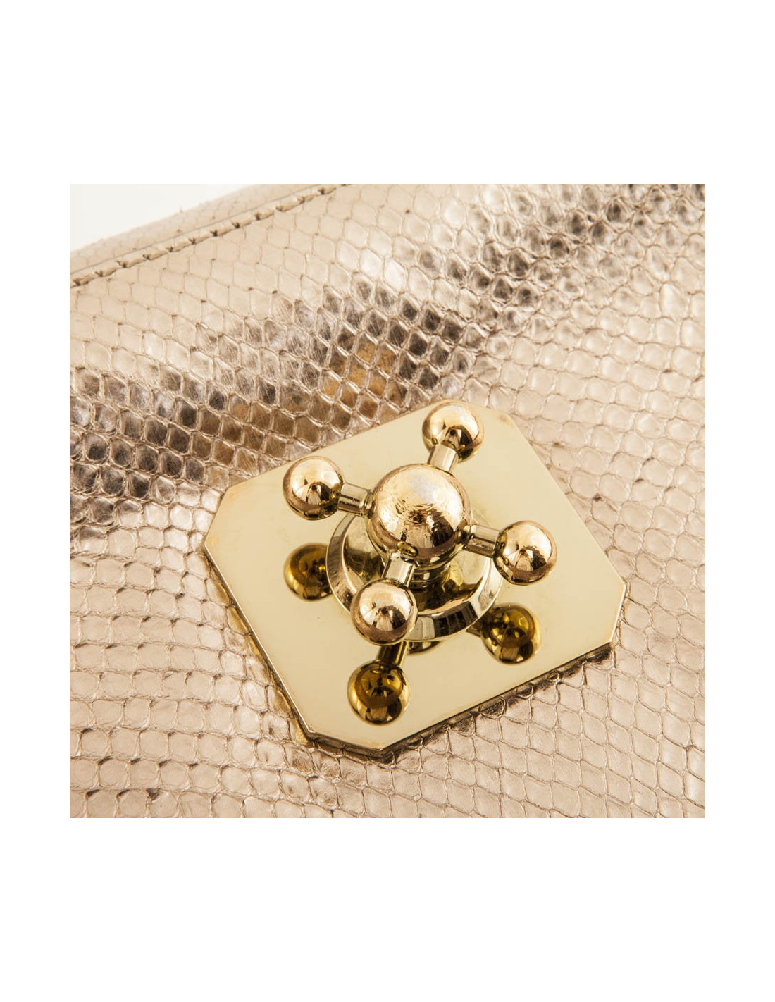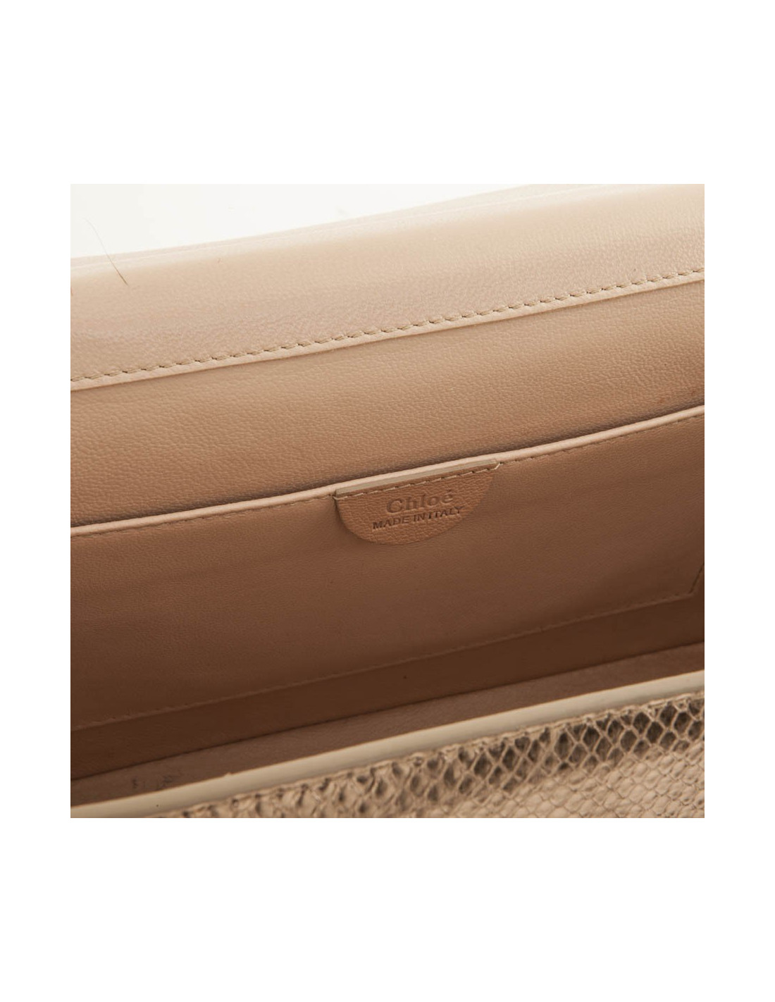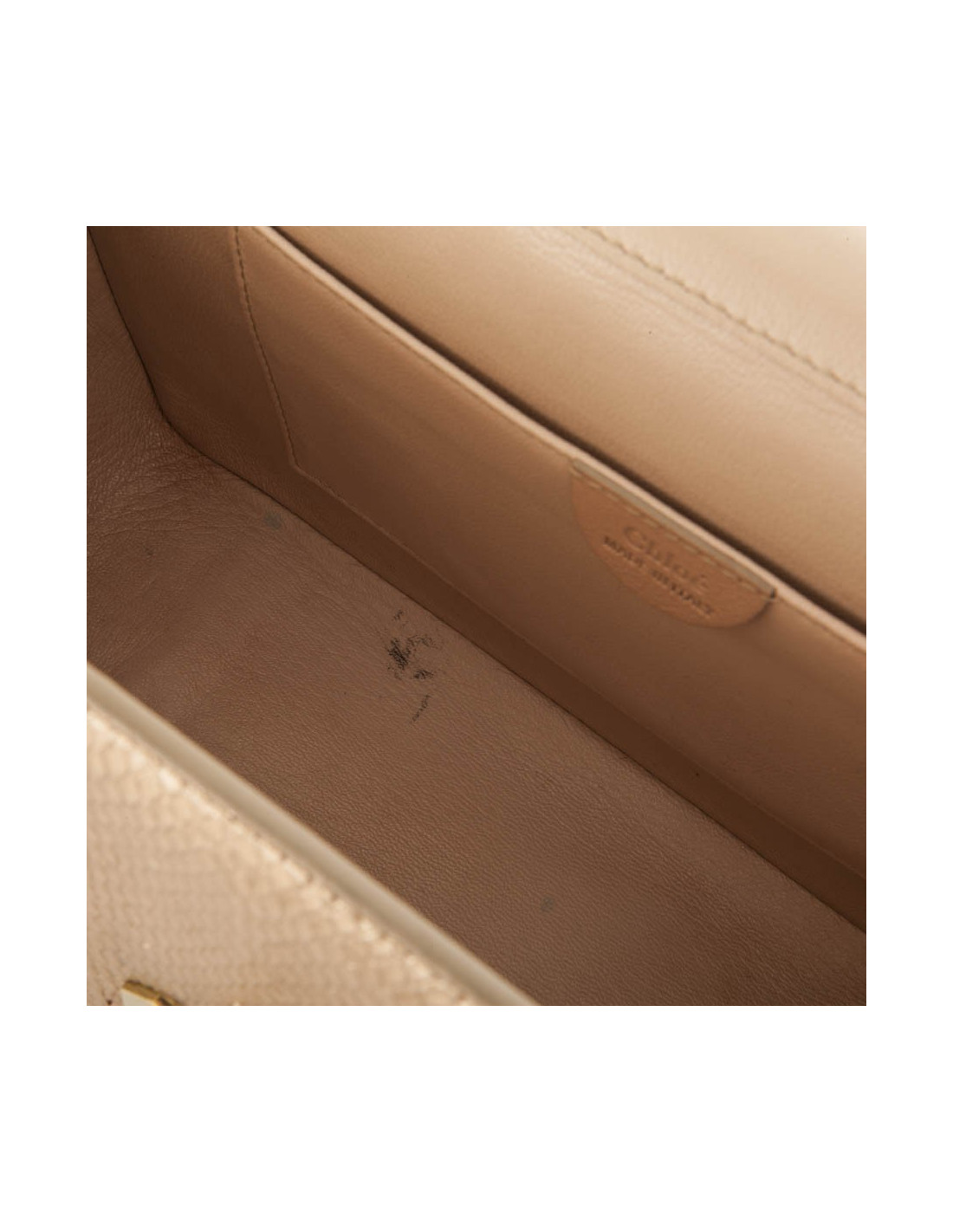 Sac Chloé en python doré. Le fermoir est trèfle doré. L'intérieur est en cuir beige avec une petite poche plaquée. Porté épaule et ou croisé. En très bon état, malgré une petite tâche à l'intérieur.