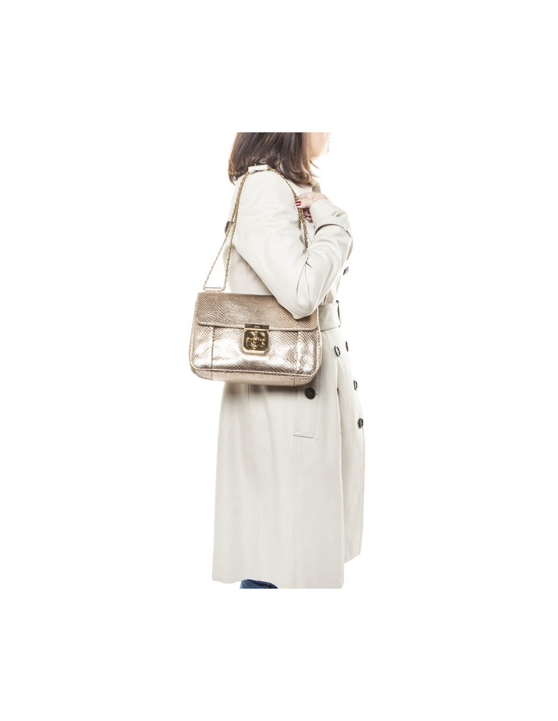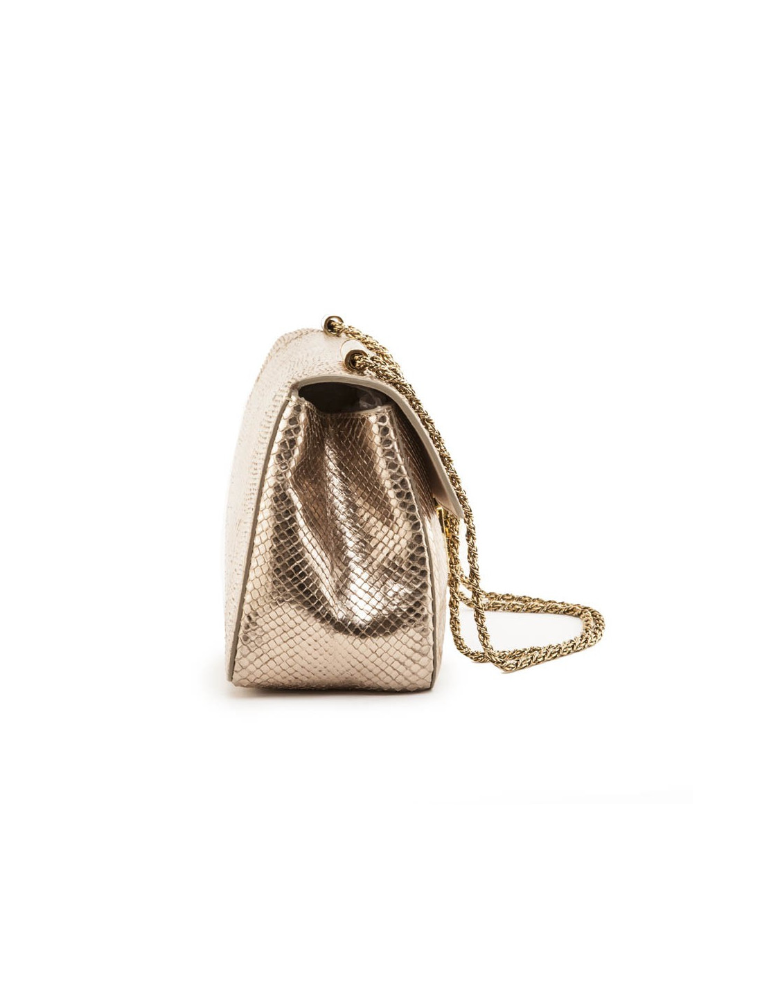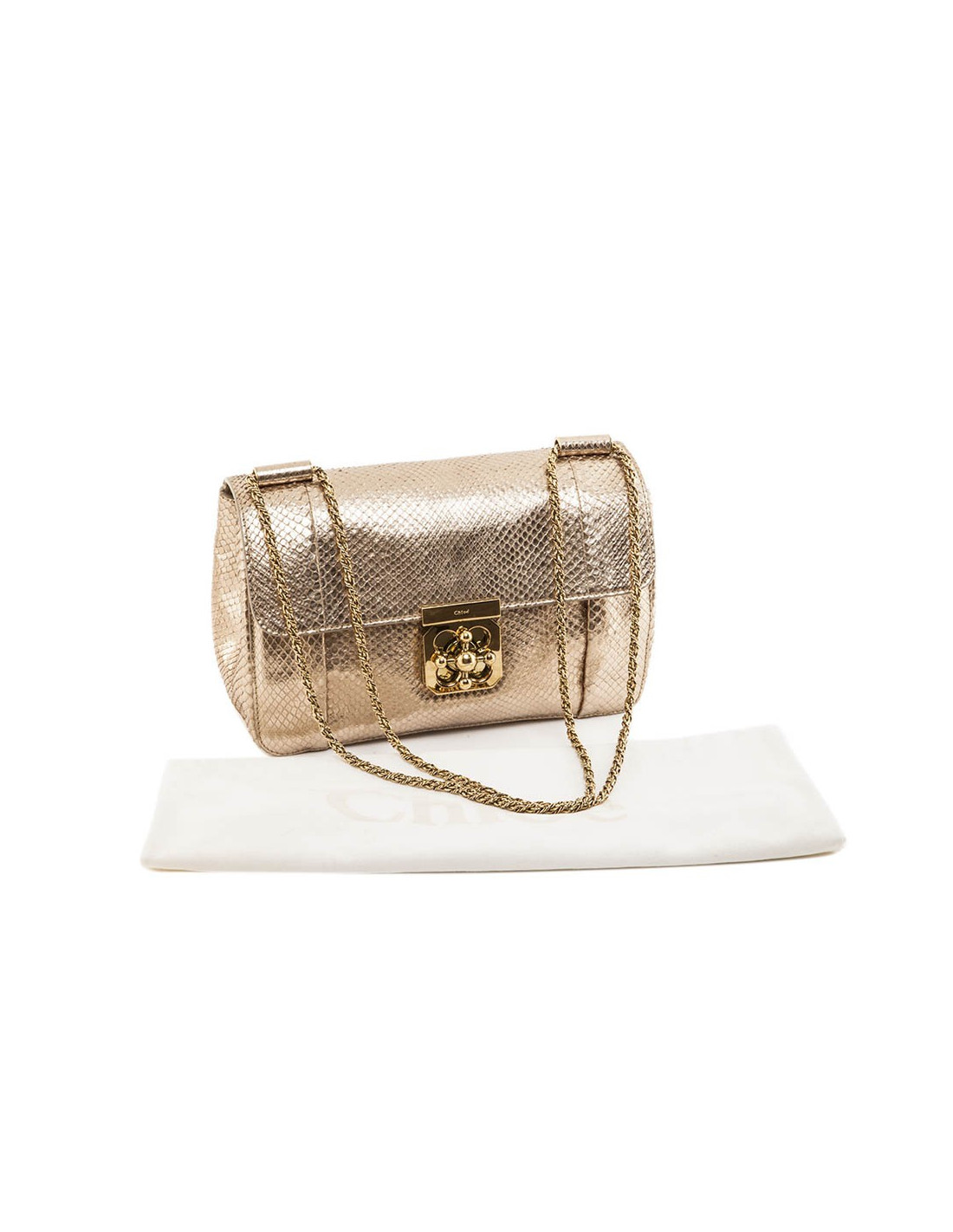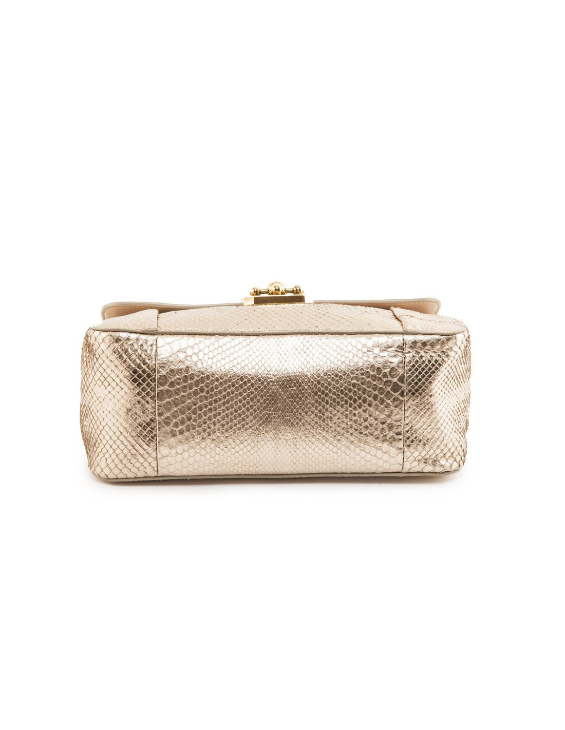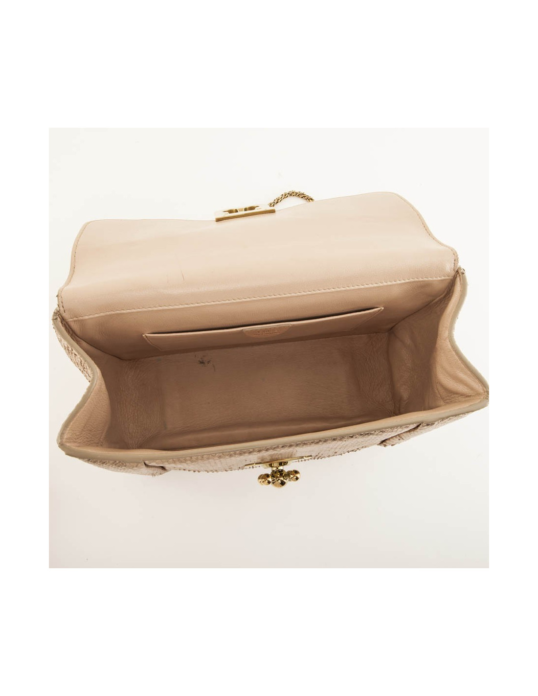 Sac Chloé en python doré. Le fermoir est trèfle doré. L'intérieur est en cuir beige avec une petite poche plaquée. Porté épaule et ou croisé. En très bon état, malgré une petite tâche à l'intérieur.