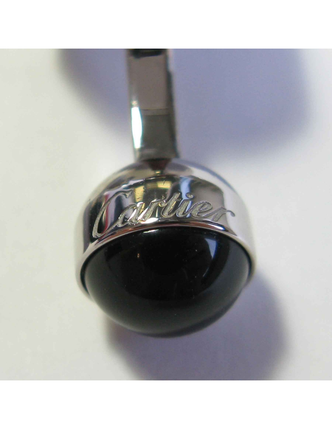 Superbe paire de boutons de manchette Cartier 'tête d'ours' en argent massif finition palladiée et laque noire.
