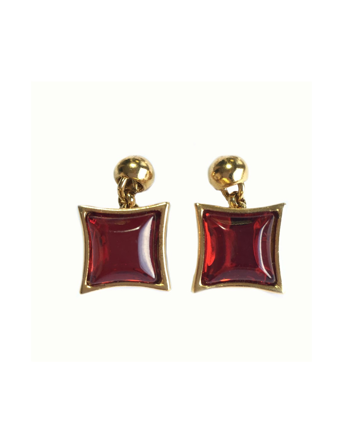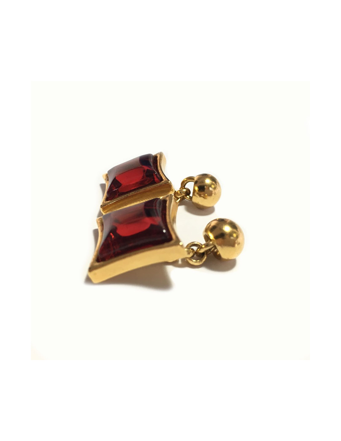 YSL YVES SAINT LAURENT vintage cuff buttons. In gold metal and Red faceted stone. Hologram of the trademark on the back.